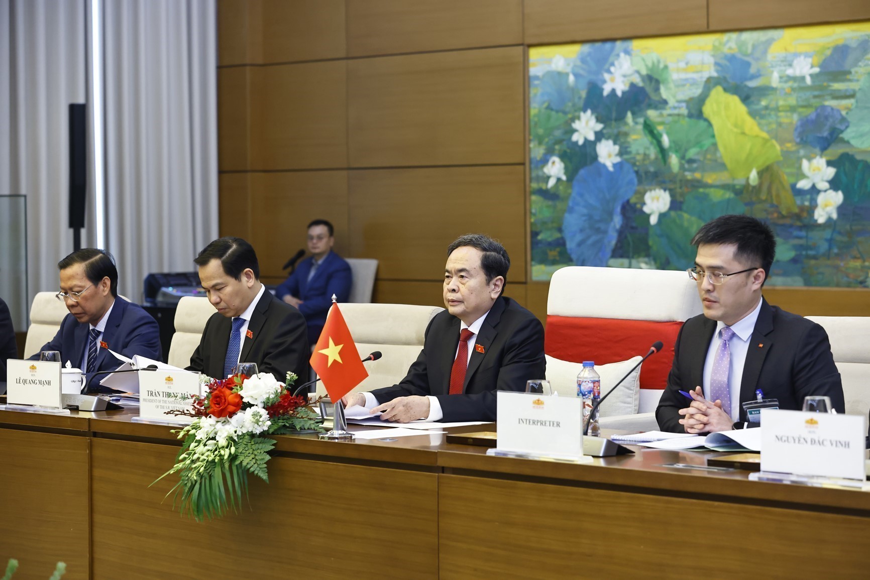 Chủ tịch Quốc hội Trần Thanh Mẫn thông tin về kết quả Đại hội XIV của Đảng, tình hình chuẩn bị bầu cử đại biểu Quốc hội khóa XVI và nhấn mạnh đường lối đối ngoại độc lập, tự chủ, tự cường, đa phương hóa, đa dạng hóa, sẵn sàng đóng góp tích cực, trách nhiệm vào hòa bình, ổn định và hợp tác trên cơ sở tôn trọng Hiến chương Liên hợp quốc và luật pháp quốc tế.