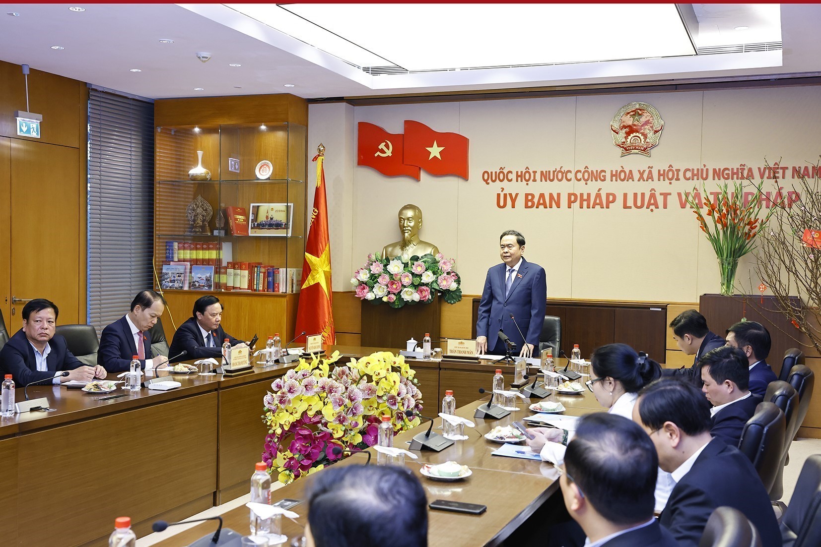 Nhân dịp đầu Xuân năm mới Bính Ngọ 2026, chiều 23/2, tại Nhà Quốc hội, Ủy viên Bộ Chính trị, Bí thư Đảng ủy Quốc hội, Chủ tịch Quốc hội Trần Thanh Mẫn đã gặp mặt, chúc Tết và giao nhiệm vụ cho Ủy ban Pháp luật và Tư pháp, Ủy ban Kinh tế và Tài chính, Văn phòng Quốc hội.