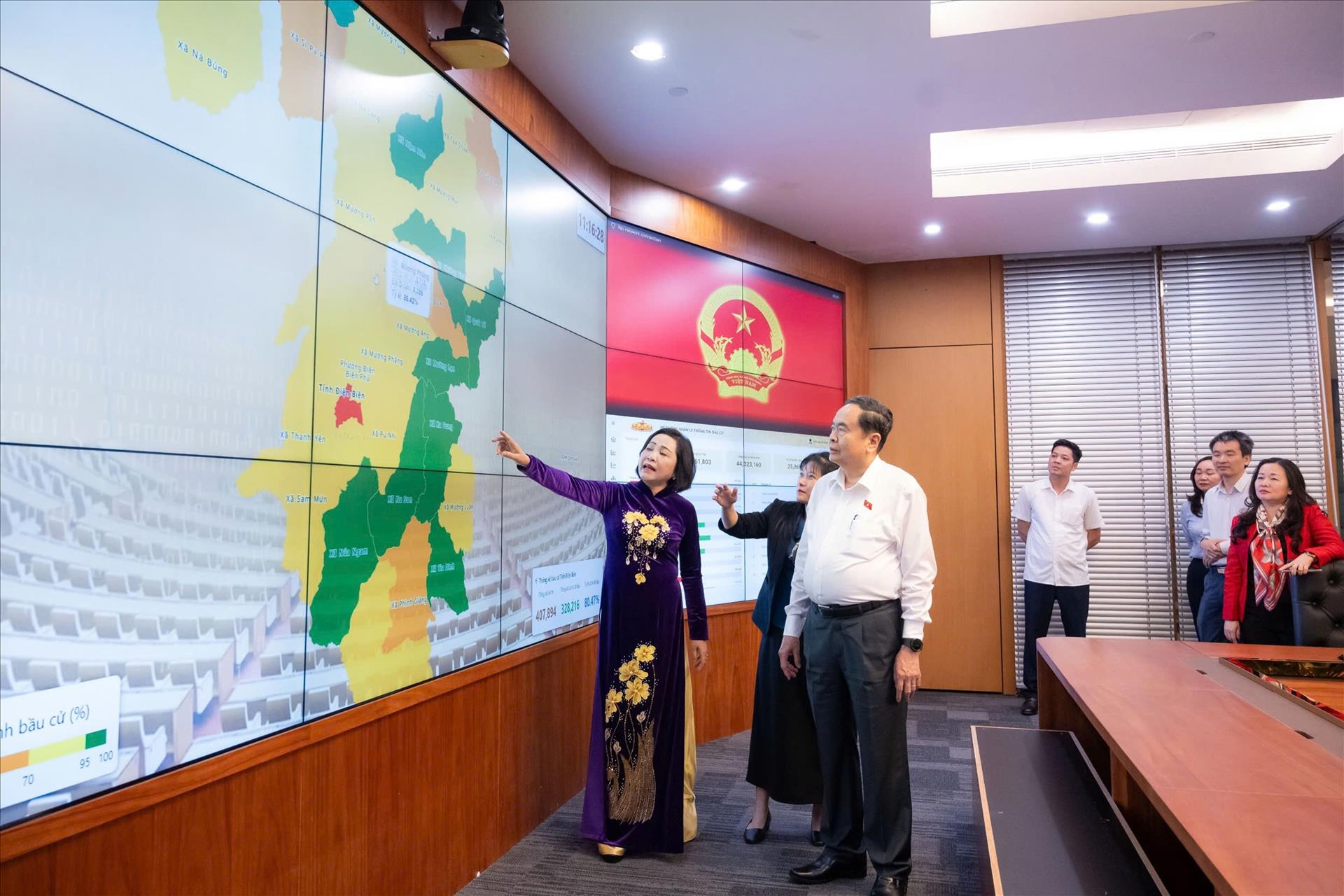 Tại buổi kiểm tra, Chủ tịch Quốc hội đánh giá cao công tác chuẩn bị, tổ chức và vận hành hệ thống phục vụ bầu cử, đặc biệt là việc ứng dụng mạnh mẽ công nghệ thông tin trong điều hành, cập nhật và truyền tải dữ liệu. Theo Chủ tịch Quốc hội, kỳ bầu cử lần này thể hiện rõ bước tiến trong chuyển đổi số khi các nền tảng công nghệ được triển khai đồng bộ, giúp thông tin được truyền tải nhanh chóng, chính xác và bảo đảm an toàn.