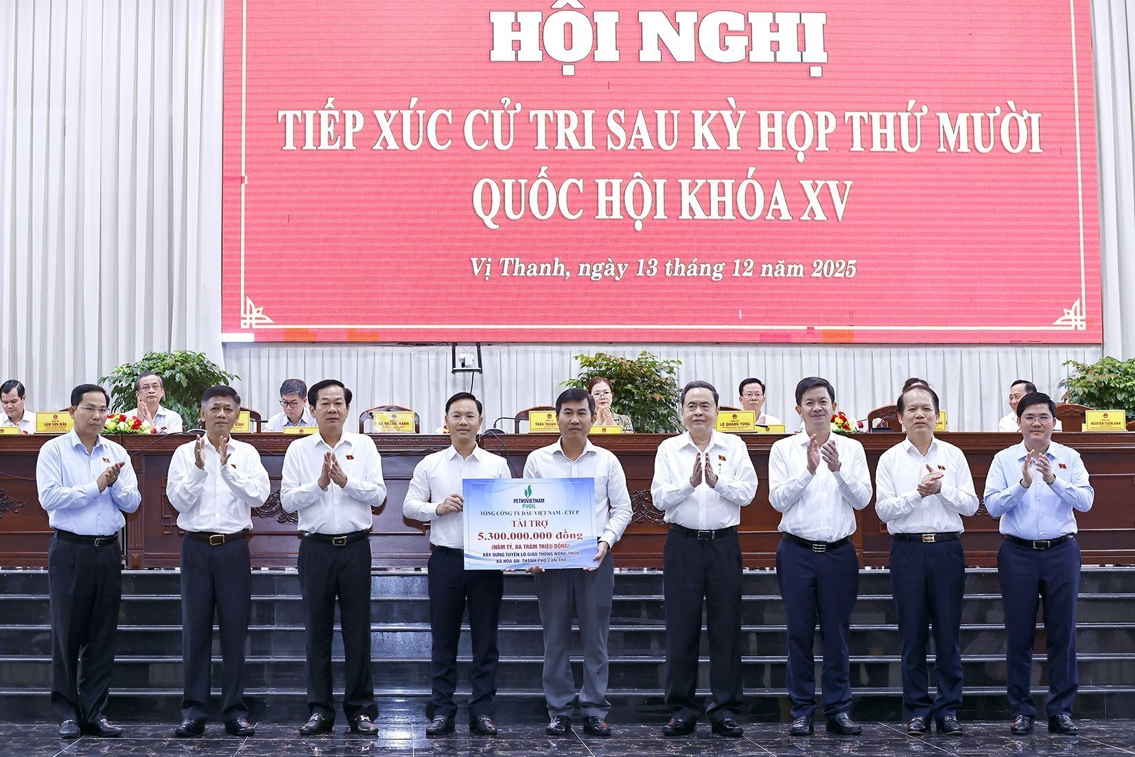 Tại Hội nghị, Chủ tịch Quốc hội Trần Thanh Mẫn chứng kiến lãnh đạo Tập đoàn Công nghiệp Năng lượng quốc gia Việt Nam trao 5,3 tỷ đồng hỗ trợ xã Hòa An, thành phố Cần Thơ xây dựng các tuyến đường giao thông nông thôn./.