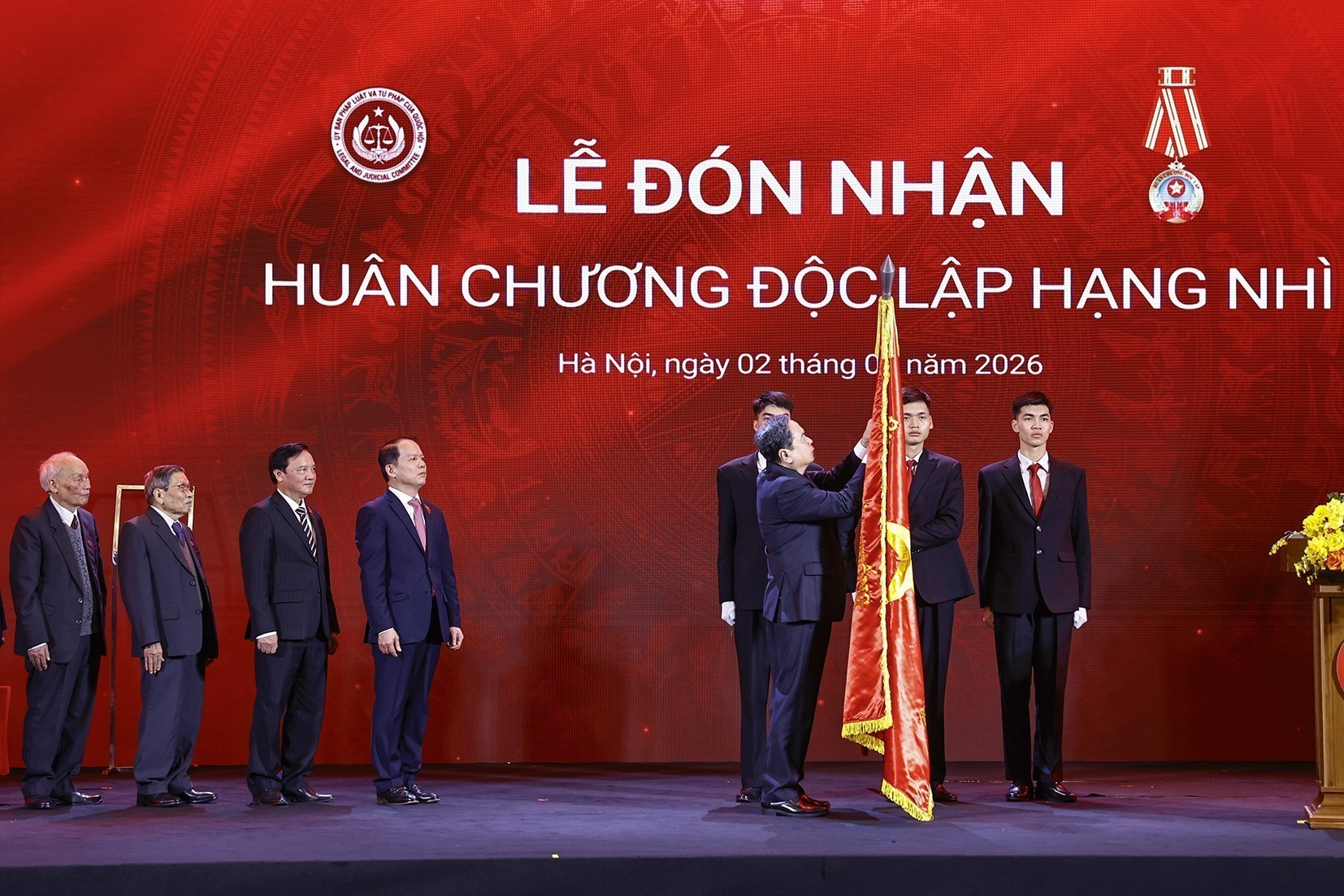 Tại buổi lễ, thay mặt lãnh đạo Đảng, Nhà nước, Chủ tịch Quốc hội Trần Thanh Mẫn đã trao Huân chương Độc lập hạng Nhì tặng Ủy ban Pháp luật và Tư pháp đã có nhiều thành tích đặc biệt xuất sắc trong công tác, góp phần vào sự nghiệp xây dựng chủ nghĩa xã hội và bảo vệ Tổ quốc./.