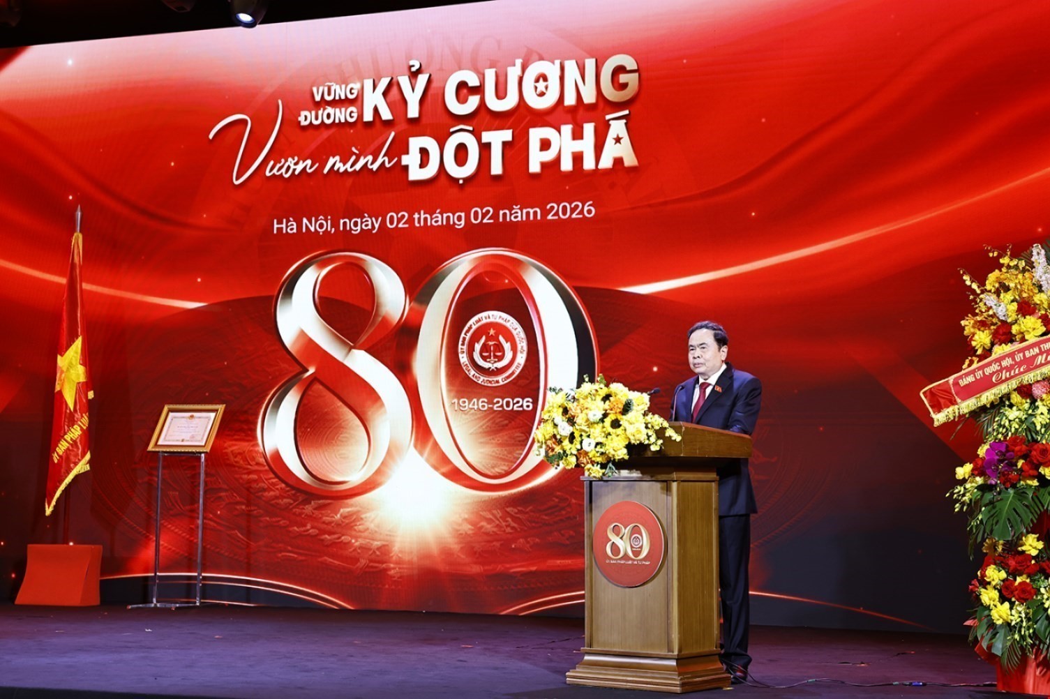 Ghi nhận, biểu dương những nỗ lực, đóng góp của Ủy ban thời gian qua, Chủ tịch Quốc hội Trần Thanh Mẫn nhấn mạnh, những đóng góp đó chính là sự kết tinh của trí tuệ, tâm huyết, trách nhiệm, đoàn kết, thống nhất ý chí và hành động, tinh thần không ngừng đổi mới và sáng tạo của các thế hệ thành viên Ủy ban Pháp luật và Tư pháp. Qua đó vun đắp nên truyền thống vẻ vang của Ủy ban với 8 chữ vàng đã được lựa chọn cho chủ đề Lễ kỷ niệm là: "Vững đường kỷ cương, vươn mình đột phá".