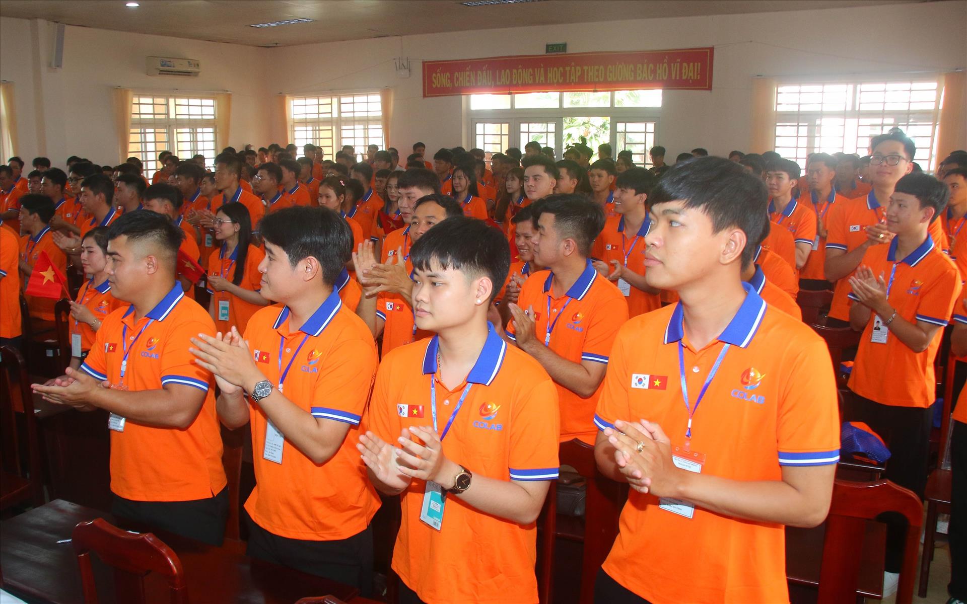 Những học viên đầu tiên của Cơ sở đào tạo Chương trình phi lợi nhuận cho người lao động đi làm việc ở nước ngoài. Ảnh: Duy Khương – TTXVN