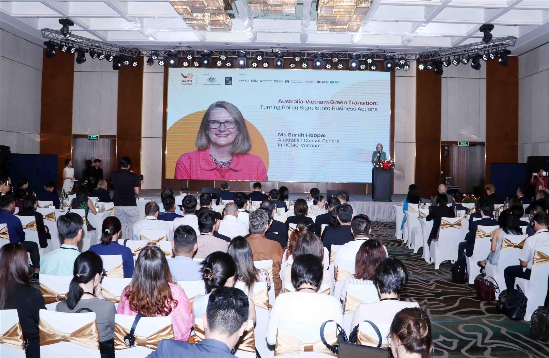 Phát biểu khai mạc, bà Sarah Hooper, Tổng lãnh sự Autralia tại Thành phố Hồ Chí Minh cho rằng, quan hệ song phương Autralia và Việt Nam đang phát triển rất mạnh mẽ, nhất là sau khi hai nước nâng cấp quan hệ Đối tác Chiến lược Toàn diện. Hai nước đã đưa ra cam kết quan trọng vì sự thịnh vượng chung và một tầm nhìn chung về một khu vực xanh hơn, bền vững hơn, đang trở thành các đối tác thương mại hàng đầu của nhau. Hiện nay, chuyển đổi xanh không còn là mục tiêu xa vời, mà là thực tế cấp bách đối với Việt Nam. Doanh nghiệp và nhà đầu tư Autralia mong muốn tham gia vào giai đoạn phát triển tiếp theo của Việt Nam.