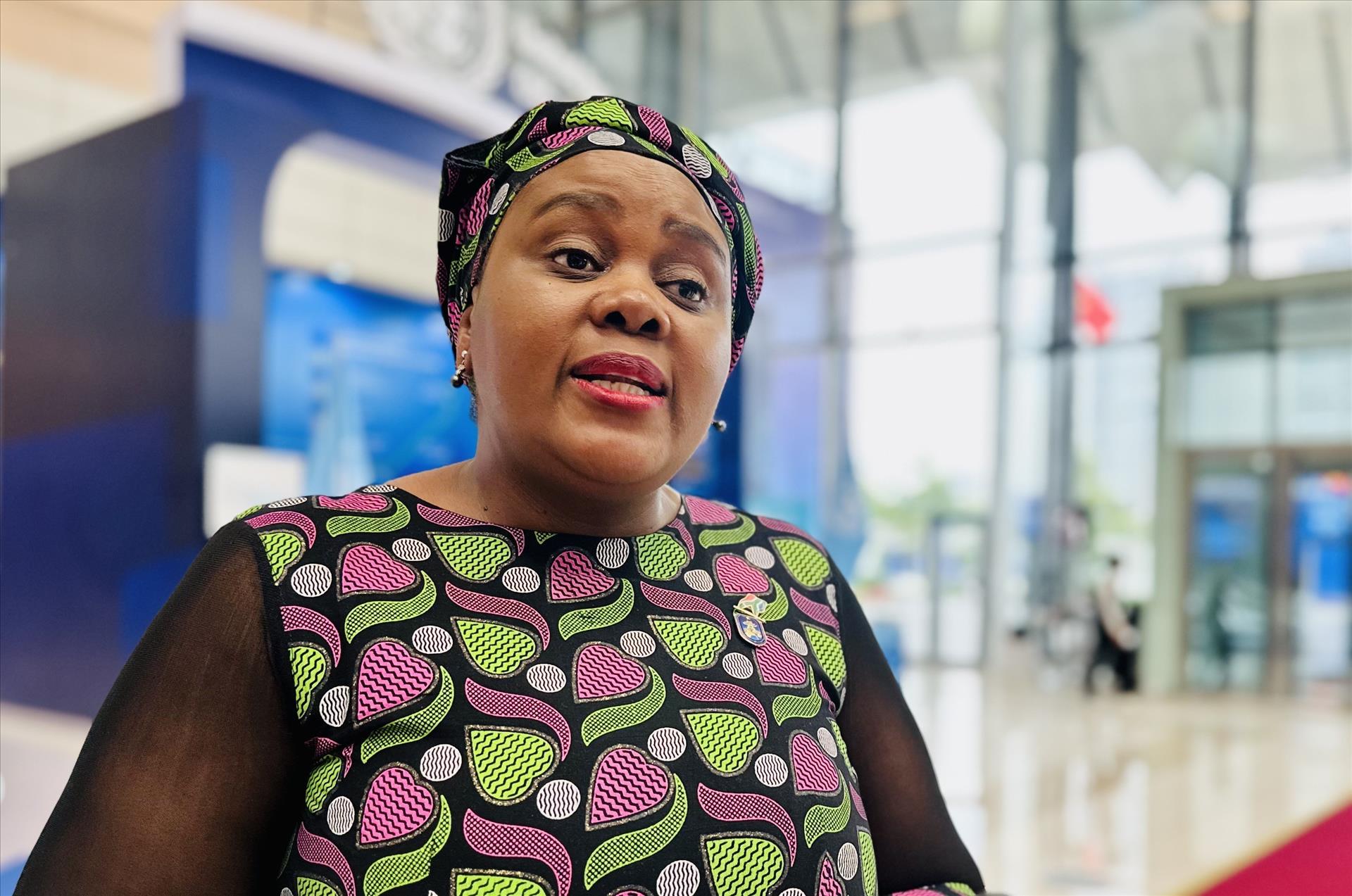 Bộ trưởng Tư pháp Nam Phi Mmamiloko T. Kubayi trả lời phỏng vấn của phóng viên TTXVN. Ảnh: Việt Đức - TTXVN
