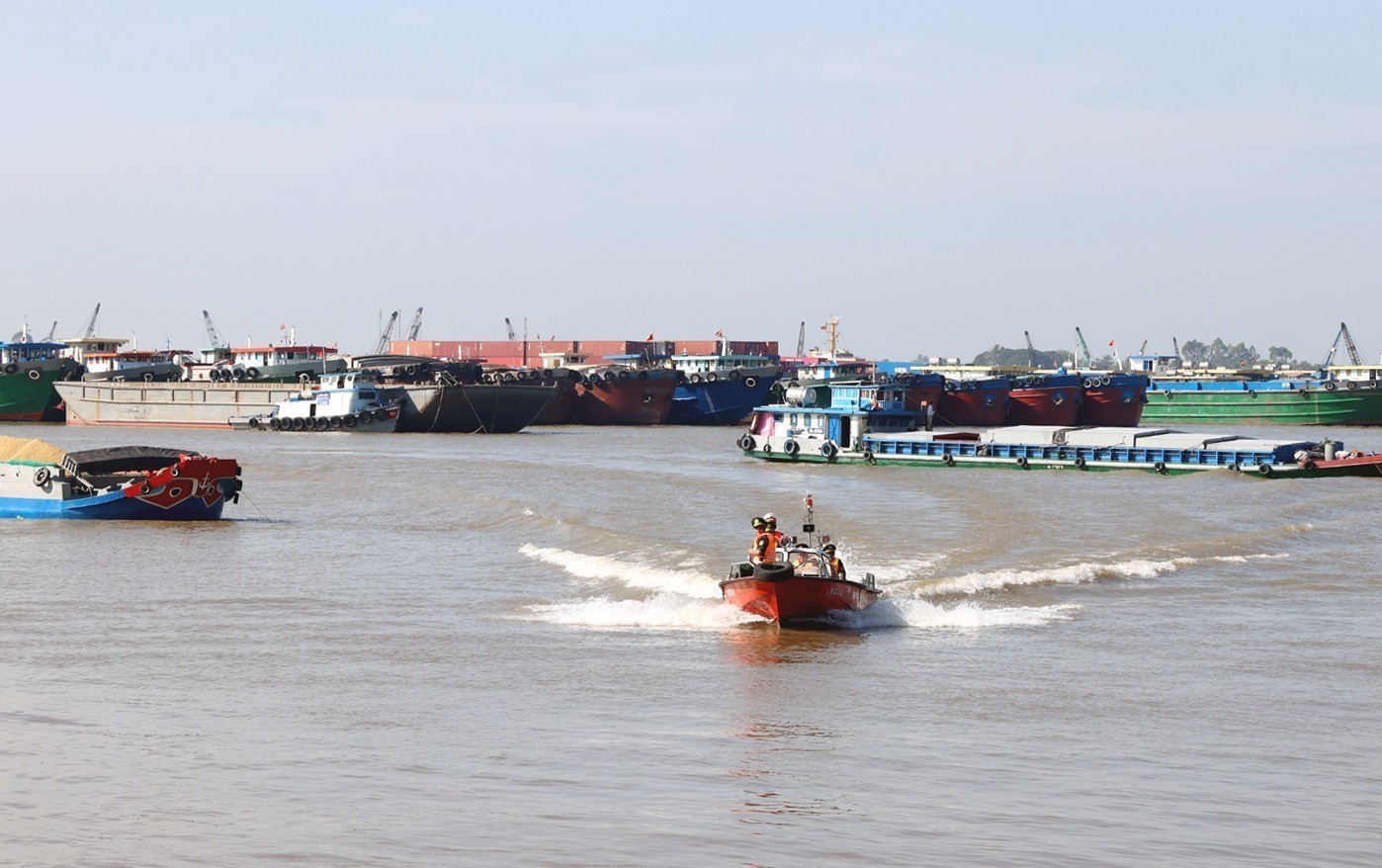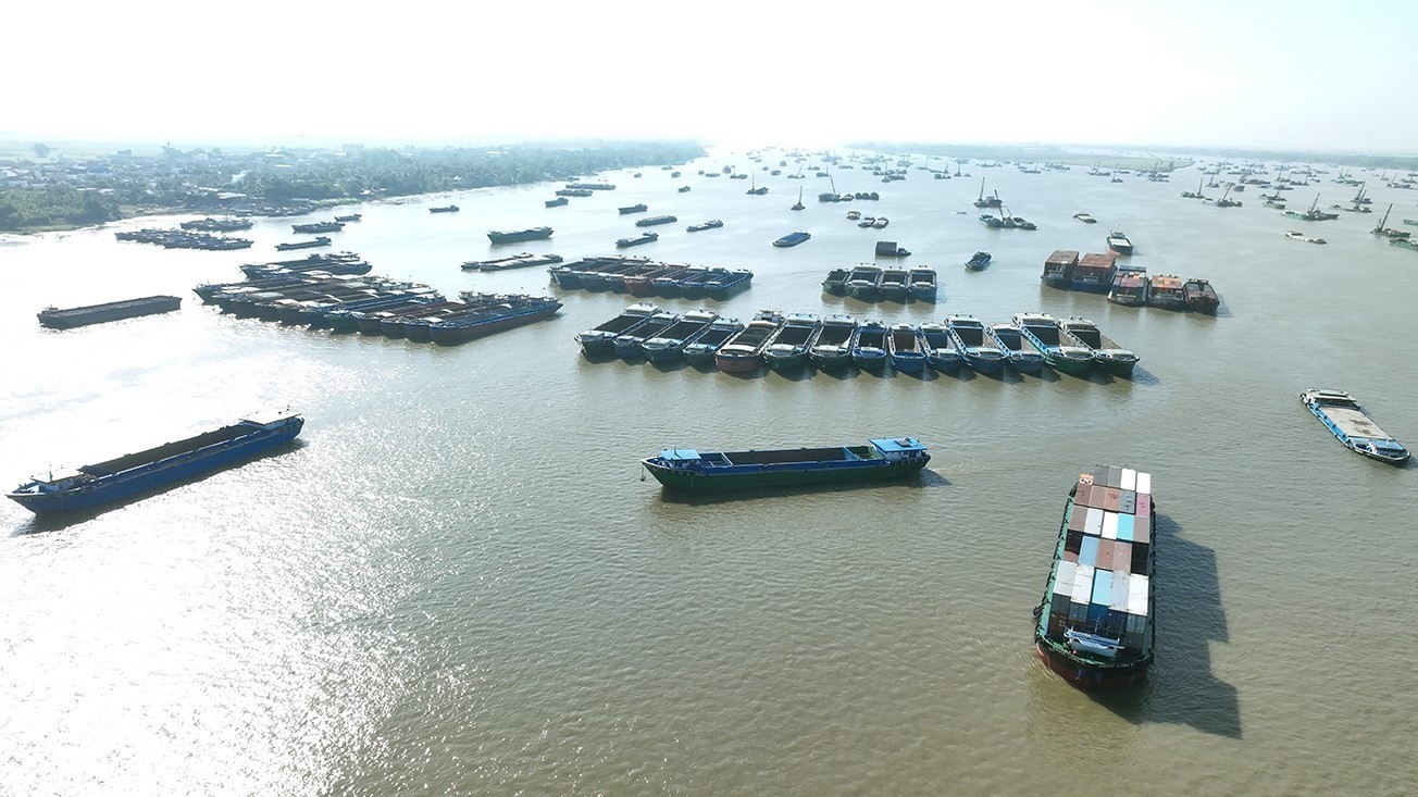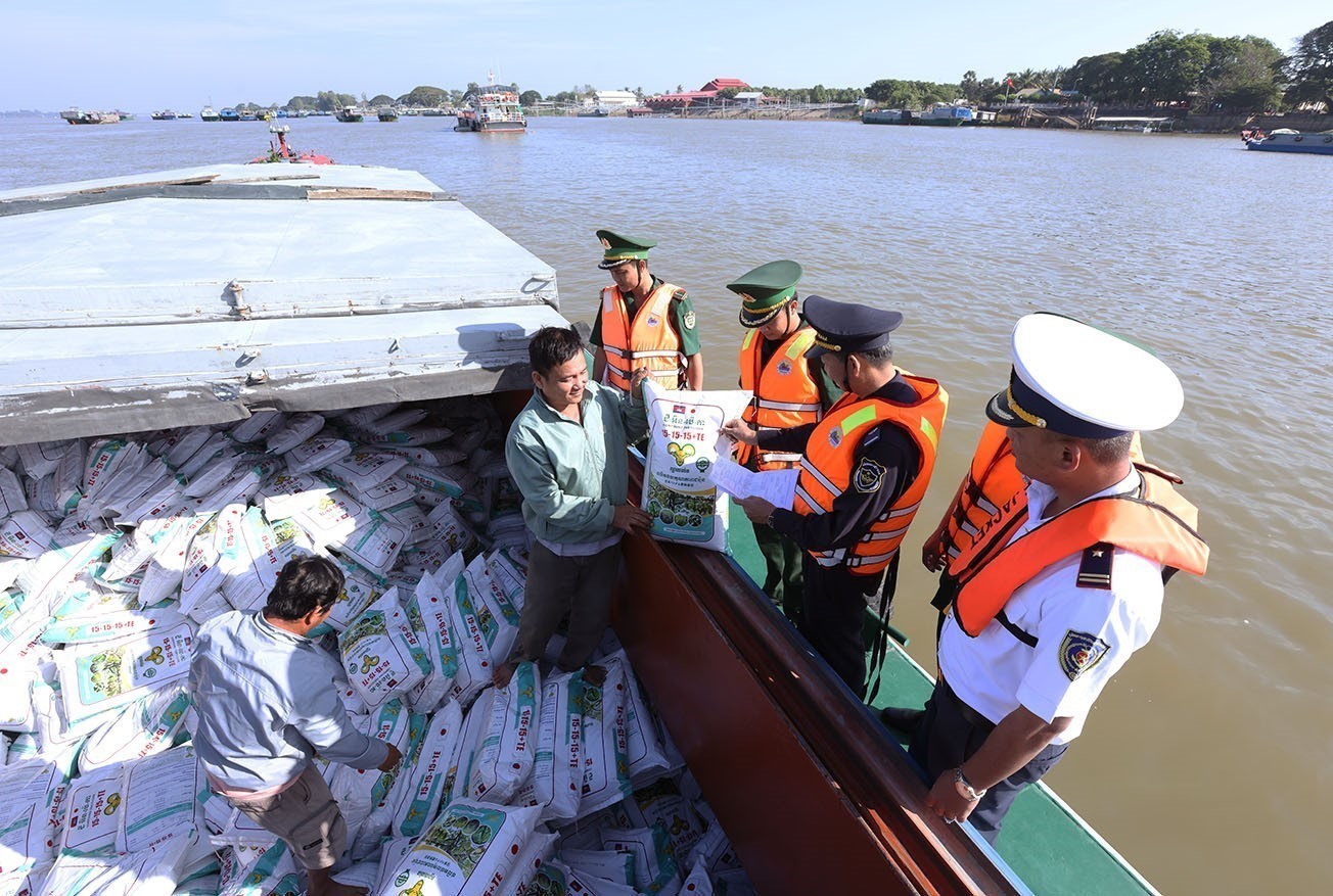 Phương tiện chuẩn bị xuất cảnh trên tuyến biên giới đường sông tại cửa khẩu quốc tế Thường Phước, xã Thường Phước, tỉnh Đồng Tháp. Ảnh: Vũ Sinh - TTXVN