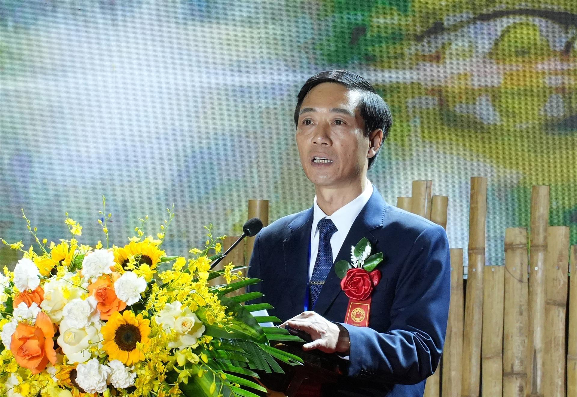 Chủ tịch UBND xã Cúc Phương Phạm Mạnh Hùng phát biểu khai mạc Ngày hội. Ảnh: Đức Phương - TTXVN