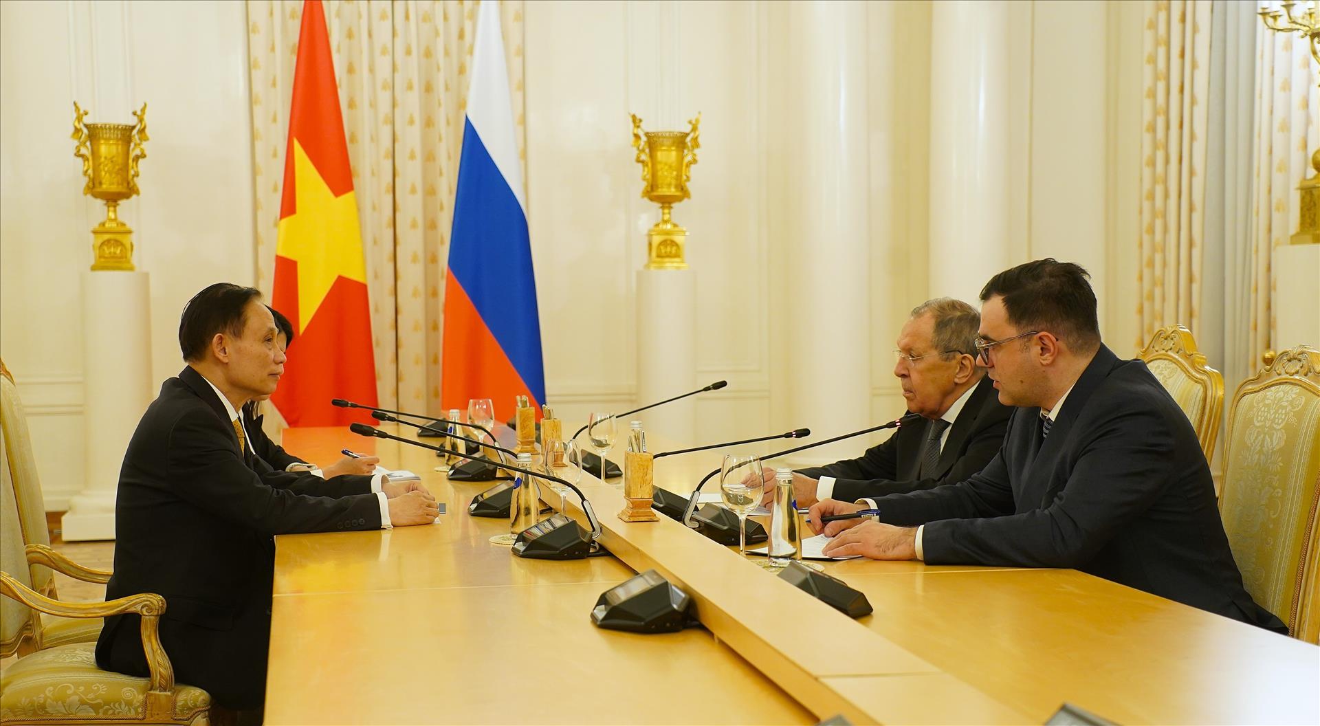Trong bầu không khí thân tình, hữu nghị và tin cậy, Ủy viên Bộ Chính trị, Bộ trưởng Ngoại giao Lê Hoài Trung đã thông báo cho Bộ trưởng Ngoại giao S.Lavrov những quan điểm chỉ đạo, đường lối đối ngoại cũng như những định hướng, nhiệm vụ quan trọng của đối ngoại Việt Nam; nhấn mạnh Đại hội XIV lần đầu tiên khẳng định vai trò, sứ mệnh của đối ngoại, hội nhập quốc tế là trọng yếu, thường xuyên.