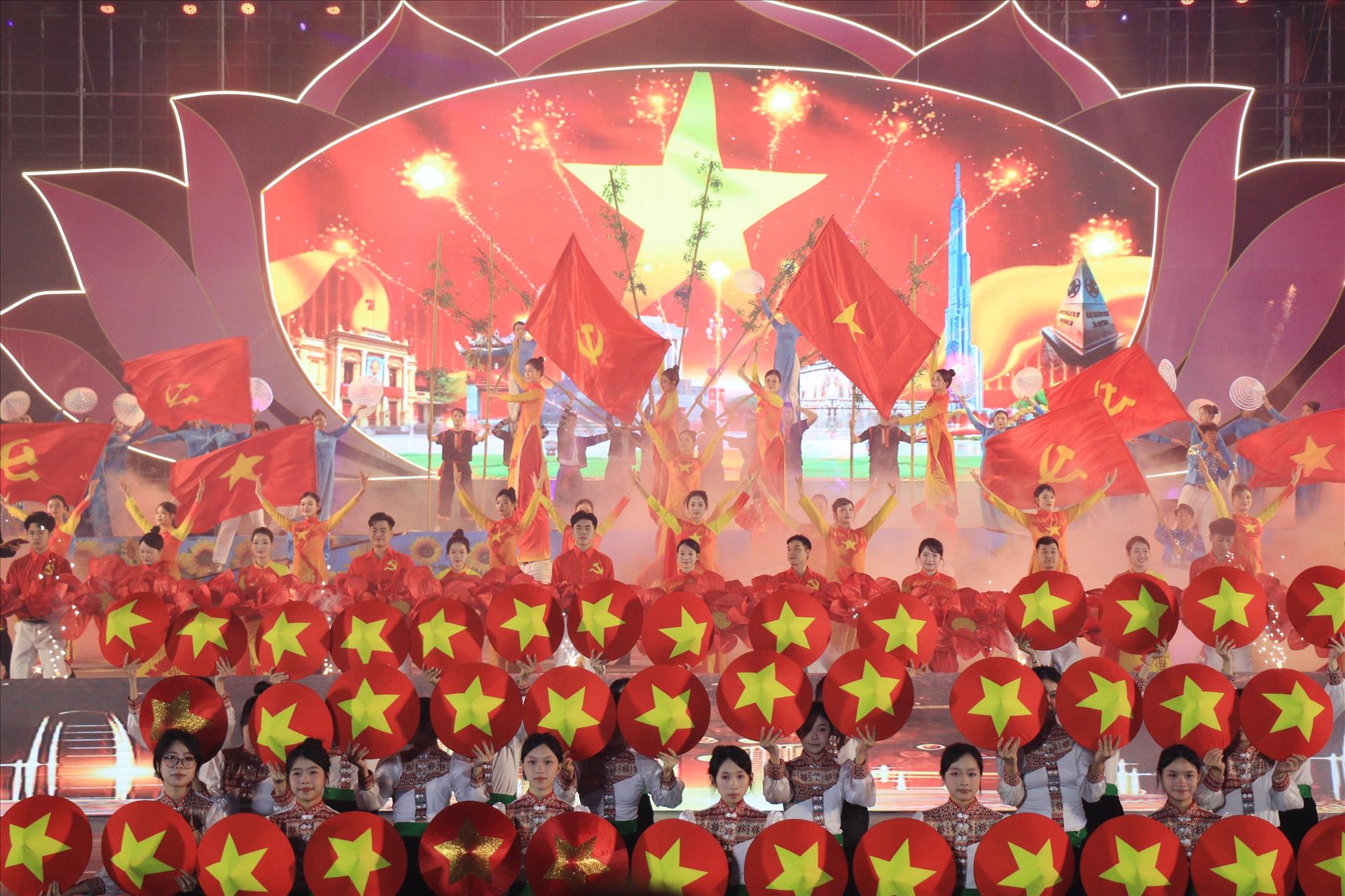 Với thời lượng 60 phút, các tiết mục nghệ thuật đặc sắc được dàn dựng công phu với sự tham gia của: Nghệ sĩ Ưu tú Viết Danh, ca sỹ Sèn Hoàng Mỹ Lam, Khắc Hiếu, Vân Anh Sao Mai và các ca sỹ, nghệ sỹ tỉnh Lào Cai, cùng gần 1.200 diễn viên quần chúng được kết hợp giữa truyền thống và hiện đại. Chương trình được tổ chức đã tạo nên một không gian nghệ thuật hoành tráng và để lại những cảm xúc sâu lắng cho đại biểu và nhân dân trong tỉnh Lào Cai trước thành công Đại hội XIV của Đảng.