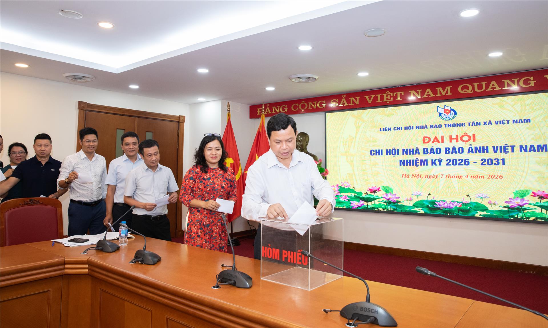 Các đại biểu tiến hành bỏ phiếu bầu Ban thư ký Chi hội Nhà báo Báo ảnh Việt Nam nhiệm kỳ 2026 – 2031. Ảnh: Khánh Long/Báo ảnh Việt Nam