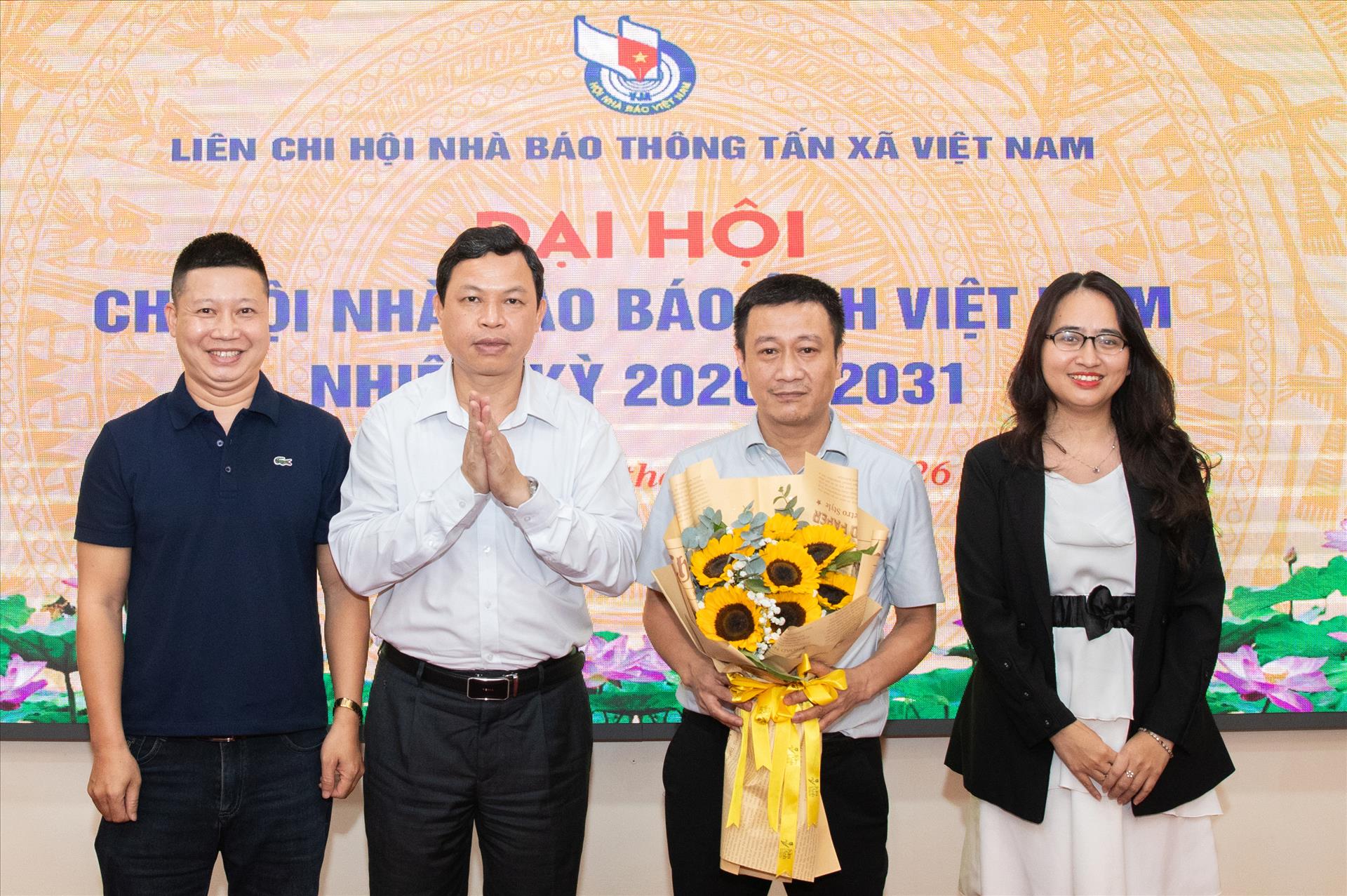 Nhà báo Nguyễn Tuấn Long – Phó Bí thư Chi bộ, Phó Tổng biên tập phụ trách Báo ảnh Việt Nam tặng hoa chúc mừng Ban thư ký Chi hội nhà báo Báo ảnh Việt Nam nhiệm kỳ 2026 – 2031. Ảnh: Khánh Long/Báo ảnh Việt Nam