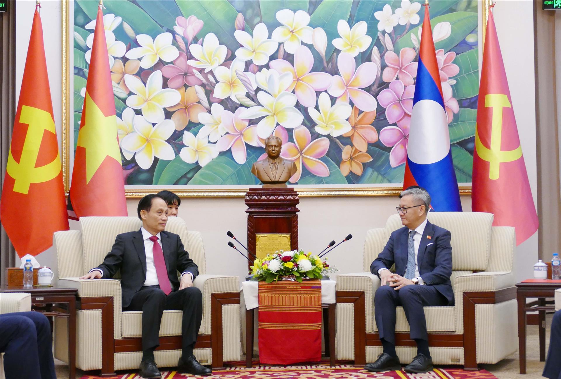Theo phóng viên TTXVN tại Lào, chiều tối 8/1 tại thủ đô Viêng Chăn, Đặc phái viên của Tổng Bí thư Ban Chấp hành Trung ương Đảng Cộng sản Việt Nam Tô Lâm, đồng chí Lê Hoài Trung, Bí thư Trung ương Đảng, Bộ trưởng Bộ Ngoại giao đã dẫn đầu Đoàn sang chúc mừng thành công của Đại hội đại biểu toàn quốc lần thứ XII Đảng Nhân dân cách mạng Lào và gặp Tổng Bí thư Ban Chấp hành Trung ương Đảng Nhân dân cách mạng Lào khoá XII, Chủ tịch nước Lào Thongloun Sisoulith.