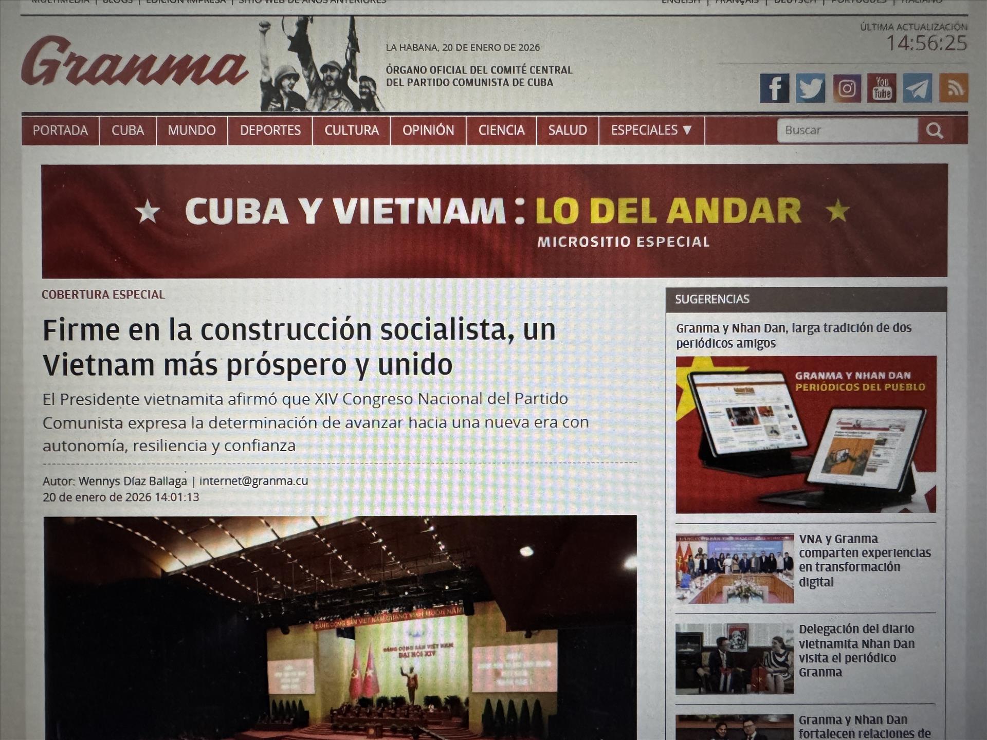 Báo điện tử Cubadebate đăng bài viết nhấn mạnh rằng Việt Nam đang bước vào một kỷ nguyên phát triển mới, được đánh dấu bằng những khát vọng mạnh mẽ và tiềm năng to lớn. Đại hội XIV của Đảng Cộng sản Việt Nam sẽ đóng vai trò quyết định việc định hình tương lai của đất nước và con đường phát triển trong kỷ nguyên mới.