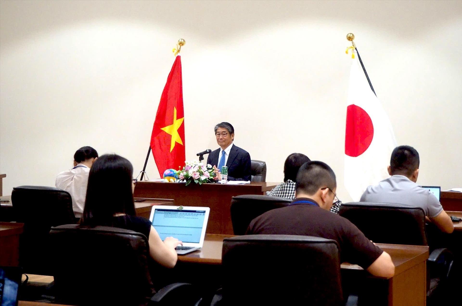 Quang cảnh Đại sứ Nhật Bản tại Việt Nam Ito Naoki gặp gỡ, trao đổi thông tin với các phóng viên báo chí Việt Nam. Ảnh: Lâm Đức - TTXVN