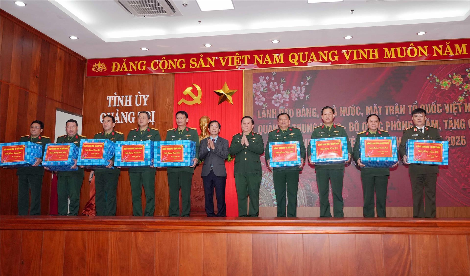 Đại tướng Nguyễn Trọng Nghĩa trao quà cho các đơn vị thuộc Quân khu 4 và Bộ Chỉ huy Quân sự tỉnh Quảng Trị nhân dịp Tết Bính Ngọ 2026. Ảnh: Tá Chuyên - TTXVN