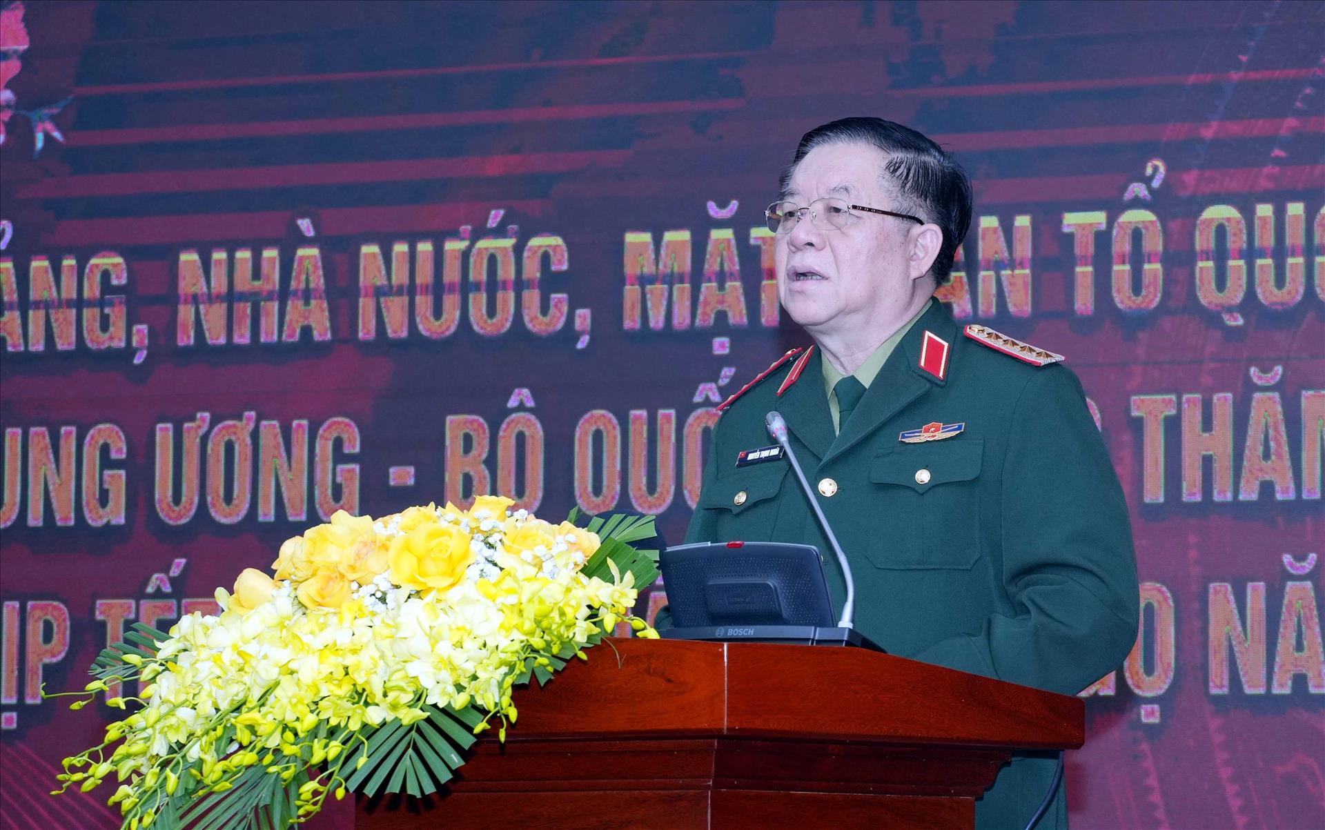 Đại tướng Nguyễn Trọng Nghĩa, Ủy viên Bộ Chính trị, Bí thư Trung ương Đảng, Ủy viên Thường vụ Quân ủy Trung ương, Chủ nhiệm Tổng cục Chính trị Quân đội nhân dân Việt Nam phát biểu tại buổi lễ. Ảnh: Tá Chuyên - TTXV