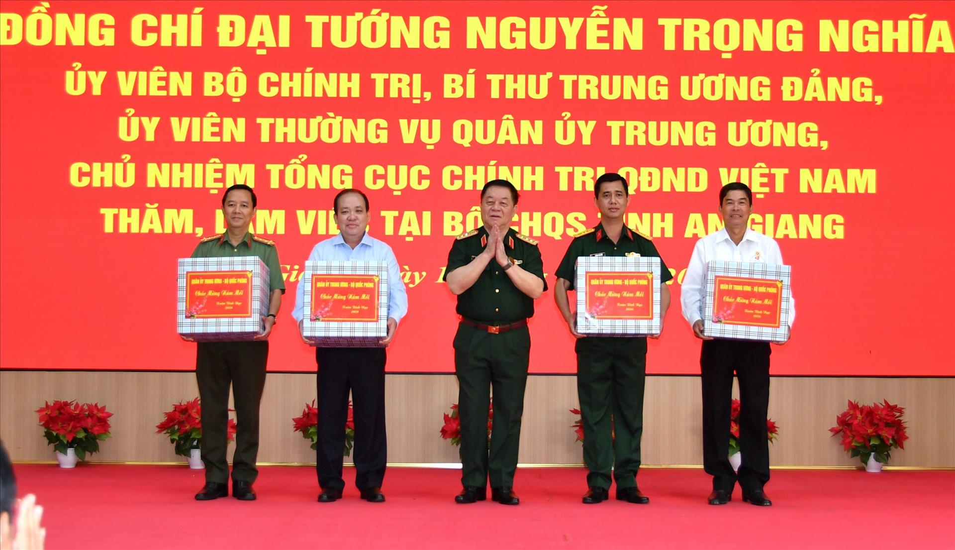 Cho biết Quân ủy Trung ương đã họp, có nhiều chỉ đạo mới, yêu cầu cao hơn đối với nhiệm vụ xây dựng quân đội và lực lượng vũ trang, Đại tướng Nguyễn Trọng Nghĩa nhấn mạnh, trước tình hình mới, An Giang cần tiếp tục làm tốt hơn nữa công tác xây dựng quân đội, giữ vững vai trò lãnh đạo của Đảng đối với lực lượng vũ trang, xây dựng quân đội chính quy, tinh nhuệ, hiện đại; triển khai hiệu quả nội dung “2 đẩy mạnh, 2 ngăn ngừa và 5 giữ vững” theo tinh thần chỉ đạo của Tổng Bí thư Tô Lâm.