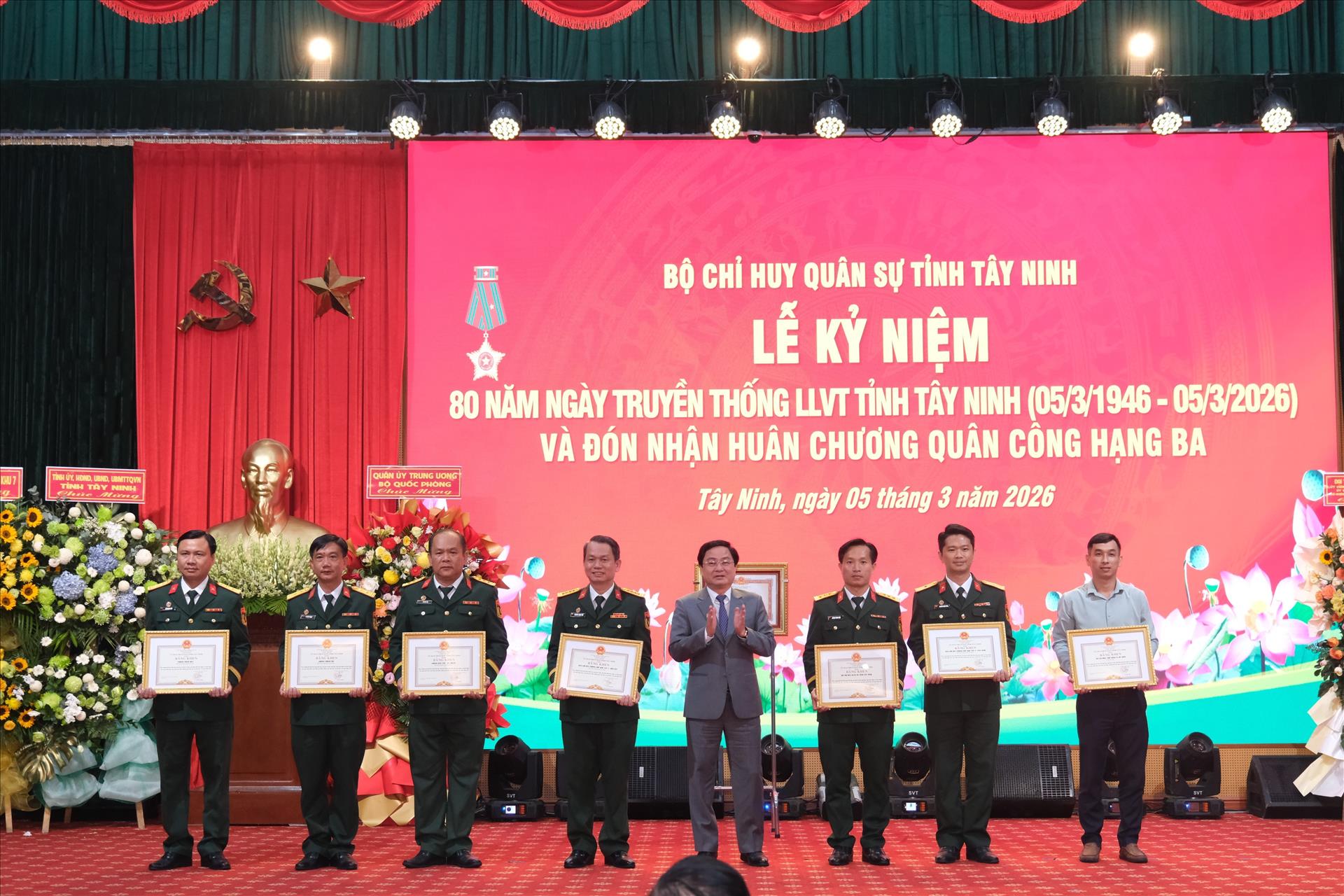 Ngày 5/3, Đảng ủy, Bộ Chỉ huy Quân sự Tây Ninh tổ chức lễ kỷ niệm 80 năm Ngày truyền thống Lực lượng vũ trang tỉnh (5/3/1946-5/3/2026) và đón nhận Huân chương Quân công hạng Ba.