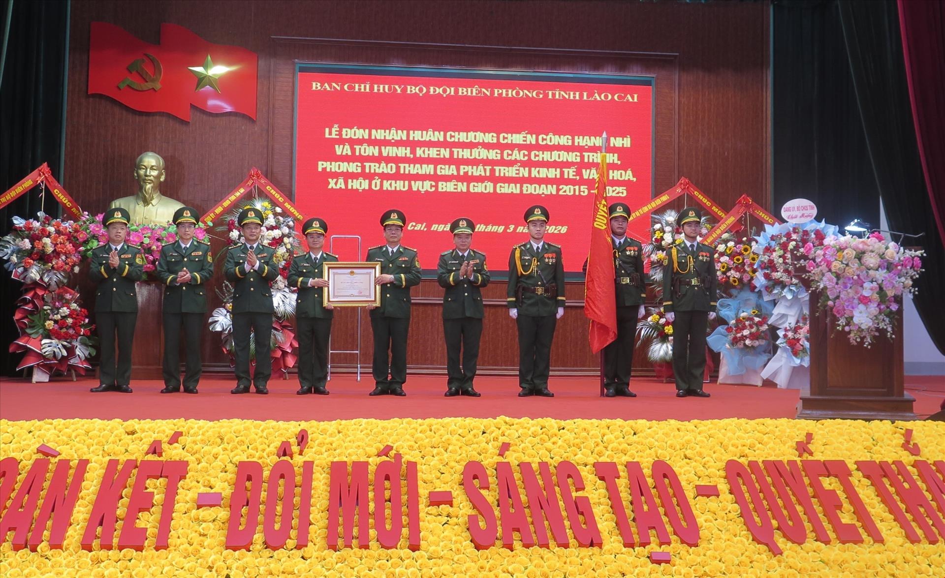 Chiều 2/3, Ban Chỉ huy Bộ đội biên phòng tỉnh Lào Cai tổ chức Lễ đón nhận Huân chương Chiến công hạng Nhì và tôn vinh, khen thưởng các chương trình, phong trào Bộ đội Biên phòng tham gia phát triển kinh tế, văn hóa, xã hội khu vực biên giới giai đoạn 2015 - 2025.