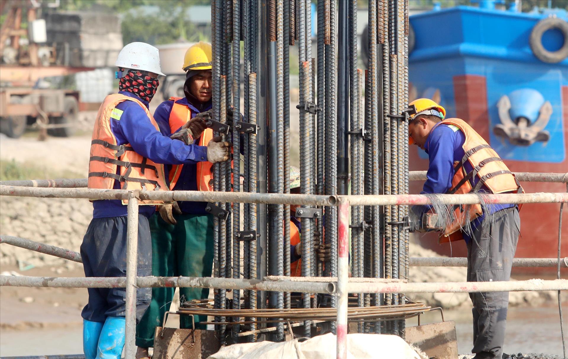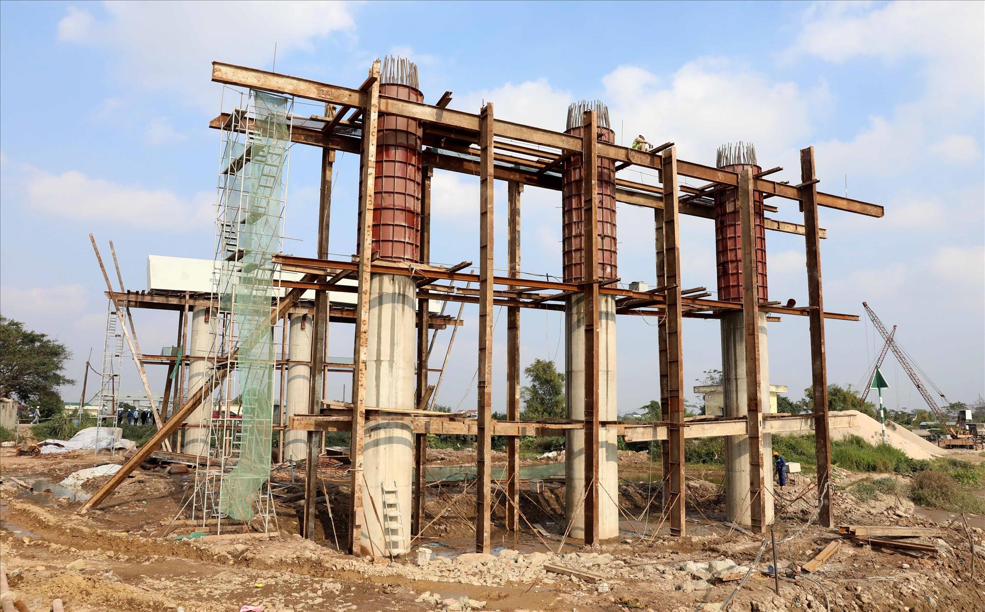 Hiện công tác giải phóng mặt bằng đất nông nghiệp cơ bản hoàn thành, đạt khoảng 94%. Tại các gói thầu xây lắp cầu, các đơn vị đang triển khai thi công cọc khoan nhồi và kết cấu phần dưới cầu, ngoài ra ở các gói thầu thi công đường trên tuyến, các đơn vị đang dọn dẹp mặt bằng và đắp bờ bao toàn bộ tuyến.