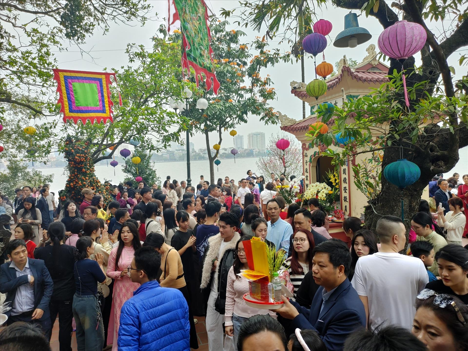 Phủ Tây Hồ (phường Tây Hồ, Hà Nội) đông đúc trong sáng mùng 1 Tết Bính Ngọ 2026. Ảnh: Nguyễn Cúc-TTXVN