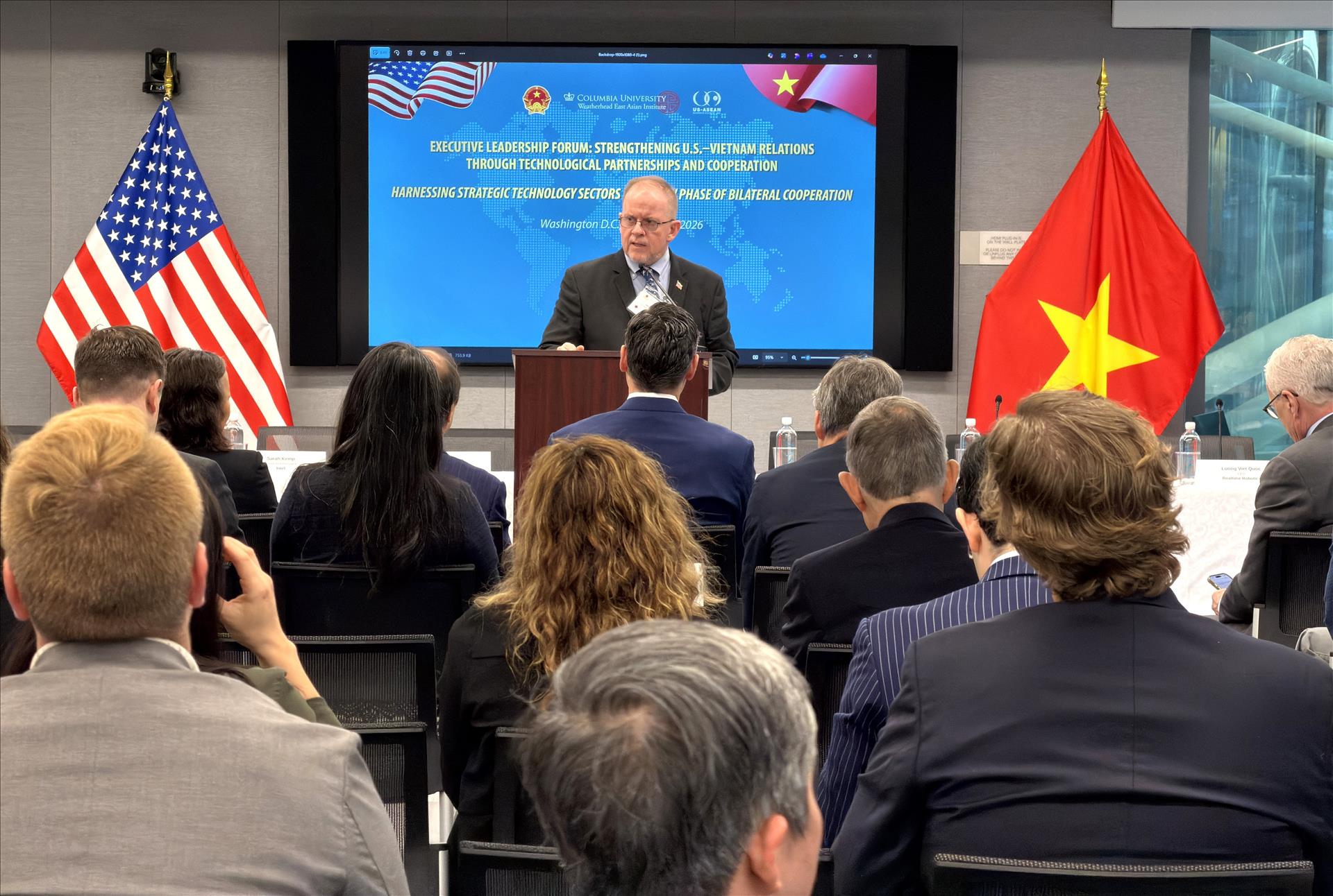 Diễn đàn thu hút hơn 100 đại biểu tham dự, gồm các nhà hoạch định chính sách hàng đầu từ Bộ Ngoại giao, Bộ Thương mại Mỹ, các cơ quan chính phủ Việt Nam cùng lãnh đạo các tập đoàn công nghệ và định chế tài chính lớn.