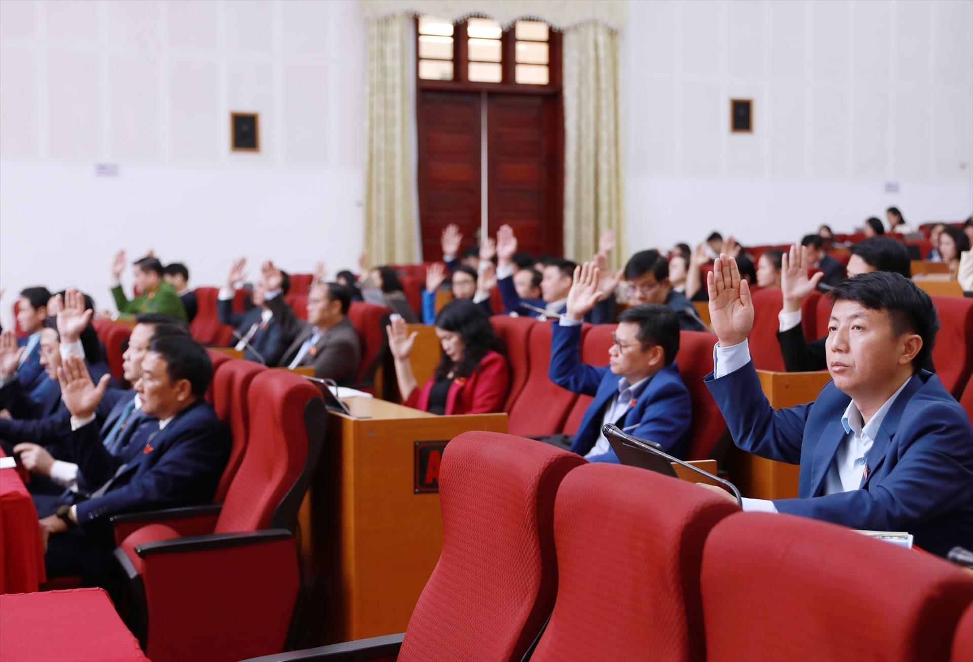 Các đại biểu biểu quyết thông qua Nghị quyết tại kỳ họp. Ảnh: Quý Trung – TTXVN
