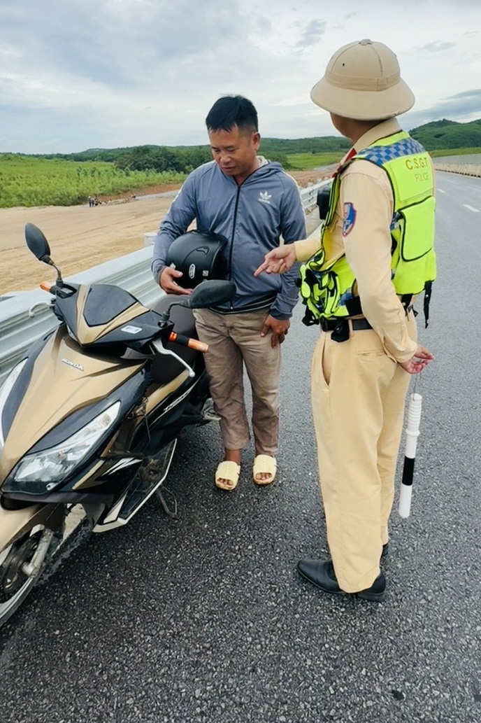 Đội CSGT Đường bộ Cao tốc số 4 ngăn chặn kịp thời một trường hợp đi xe máy vào đường cao tốc.