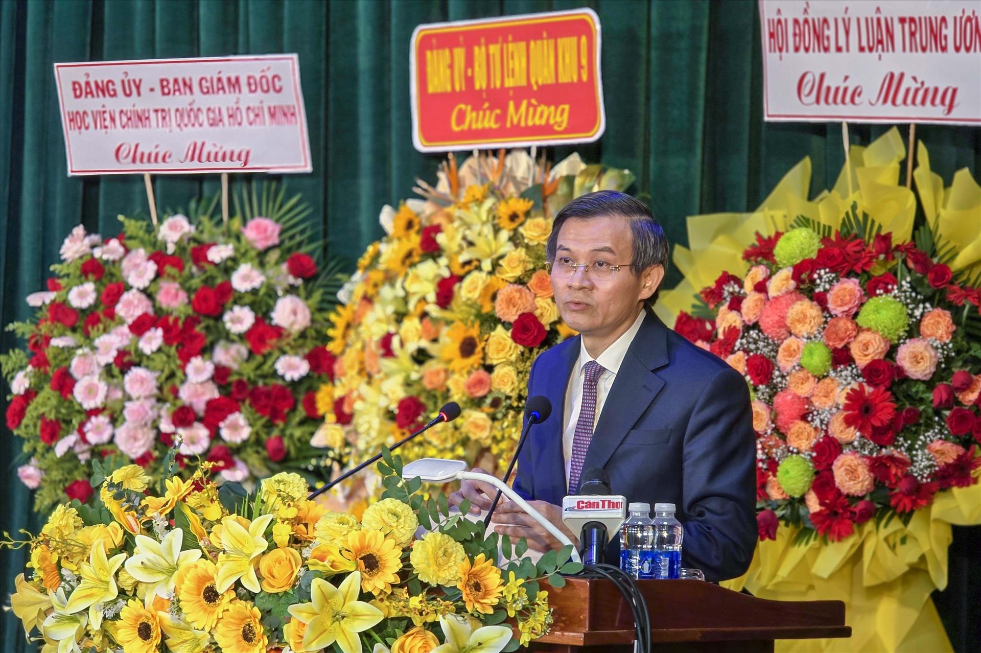 Tại buổi lễ, Phó Giáo sư, Tiến sỹ Đoàn Minh Huấn chúc mừng những thành tựu xuất sắc mà các thế hệ cán bộ, viên chức, học viên của Học viện Chính trị Khu vực IV đã đạt được trong hành trình 20 năm xây dựng và phát triển. Với sứ mệnh là trung tâm đào tạo cán bộ lãnh đạo, quản lý và nghiên cứu lý luận chính trị tại vùng trọng điểm Đồng bằng sông Cửu Long, Học viện đã khẳng định được vị thế, đóng góp quan trọng vào việc nâng cao chất lượng đội ngũ cán bộ cho các địa phương trong khu vực.