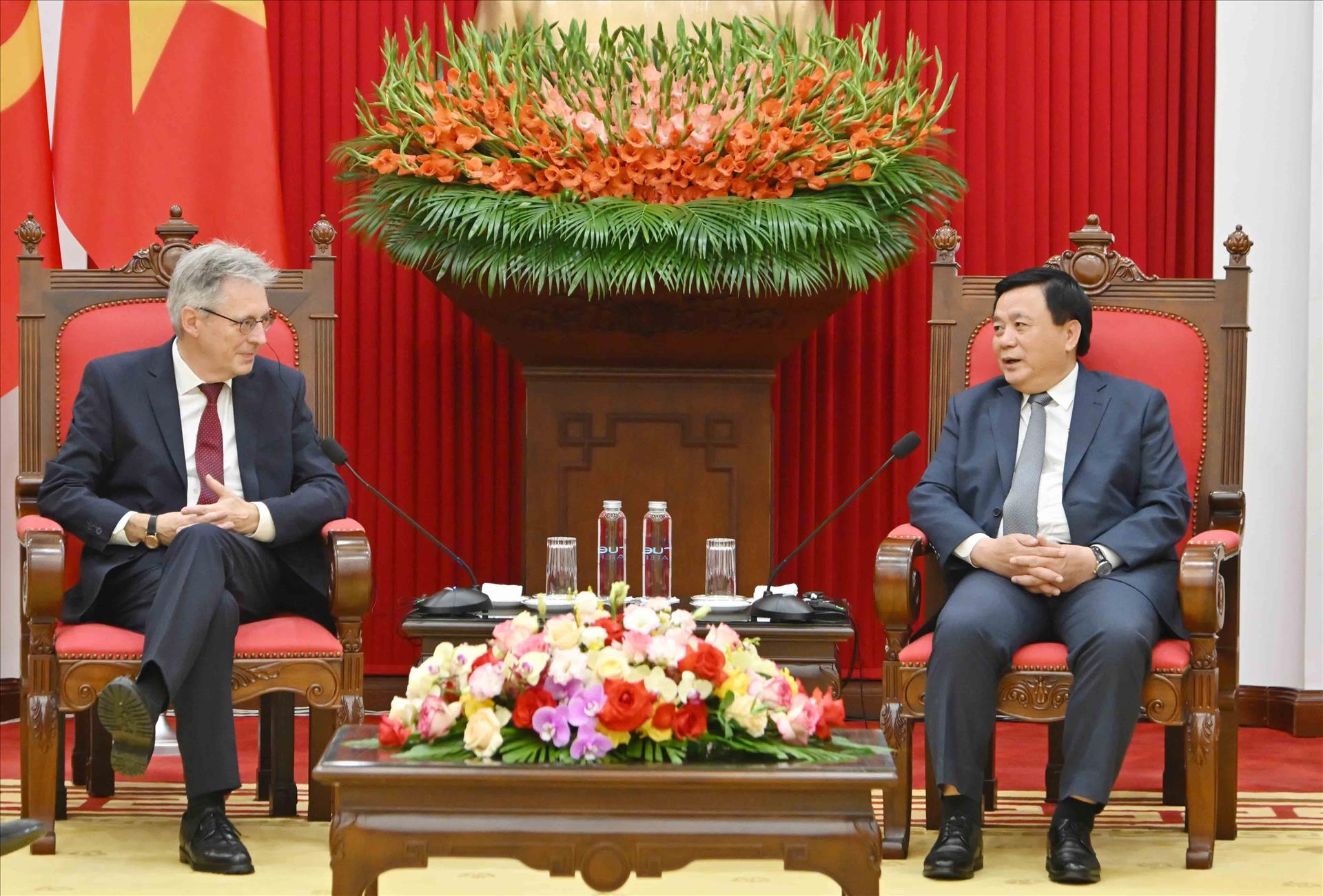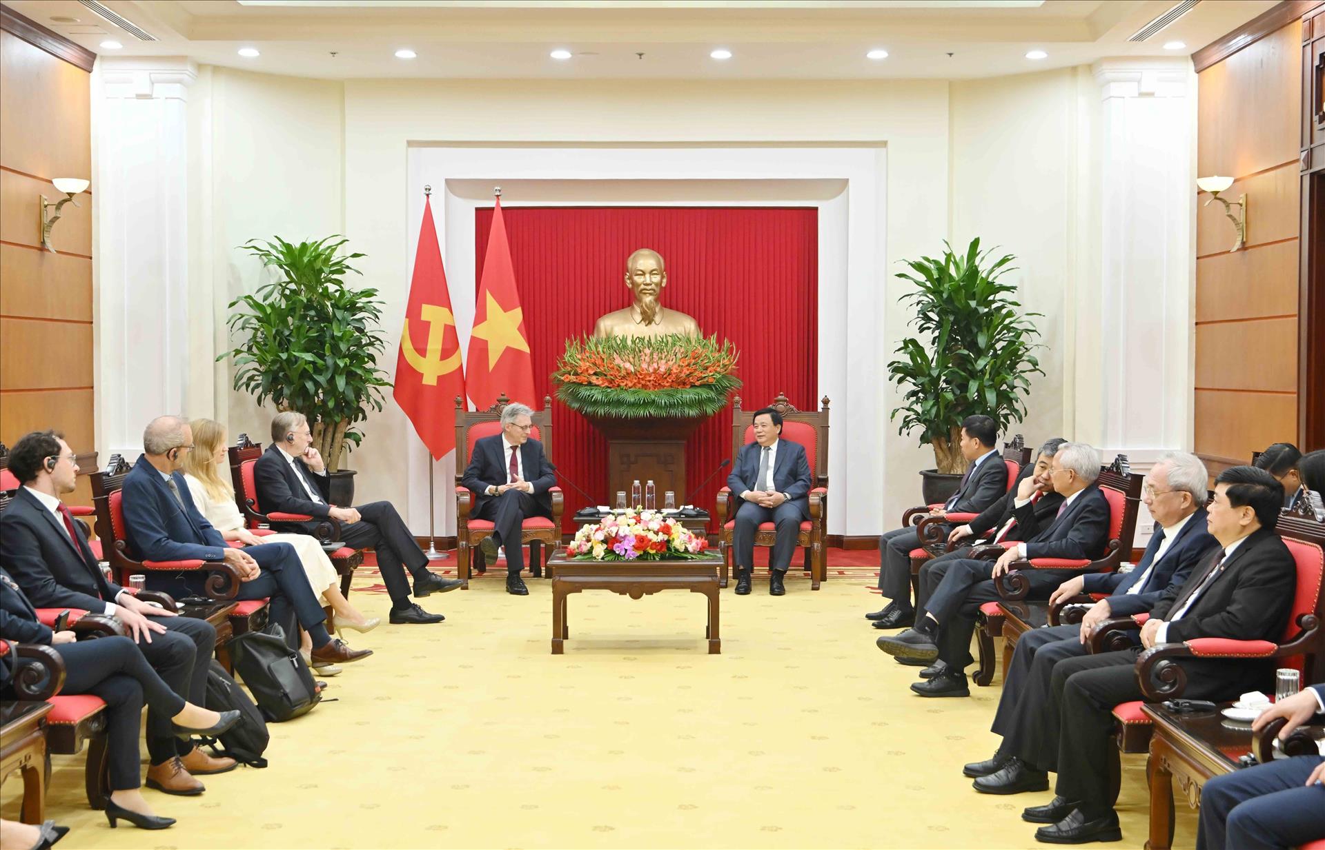 Đồng chí Nguyễn Xuân Thắng tiếp đoàn Đảng Dân chủ xã hội Đức (SPD). Ảnh: Phương Hoa - TTXVN