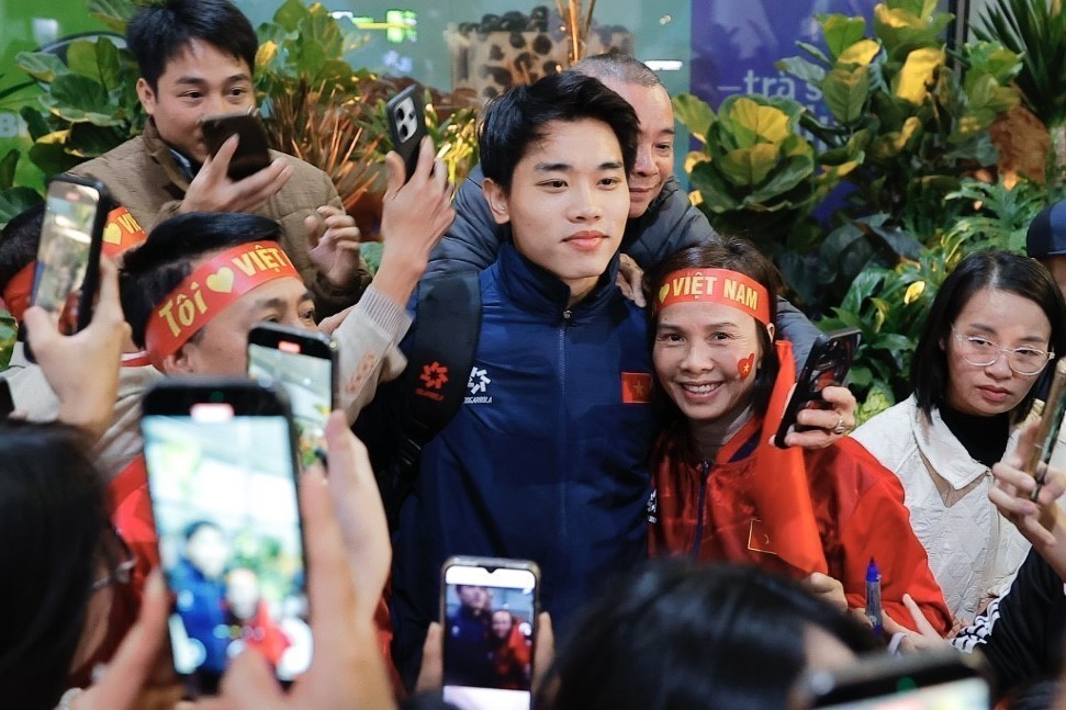 Tối 24/1, Huấn luyện viên Kim Sang Sik và các cộng sự cùng 18 cầu thủ đội tuyển U23 Việt Nam đã về đến Nội Bài (Hà Nội) cùng tấm huy chương Đồng tại AFC U23 Asian Cup 2026. Rất đông cổ động viên cùng gia đình của các cầu thủ đã có mặt để chung vui cùng chiến thắng của toàn đội.