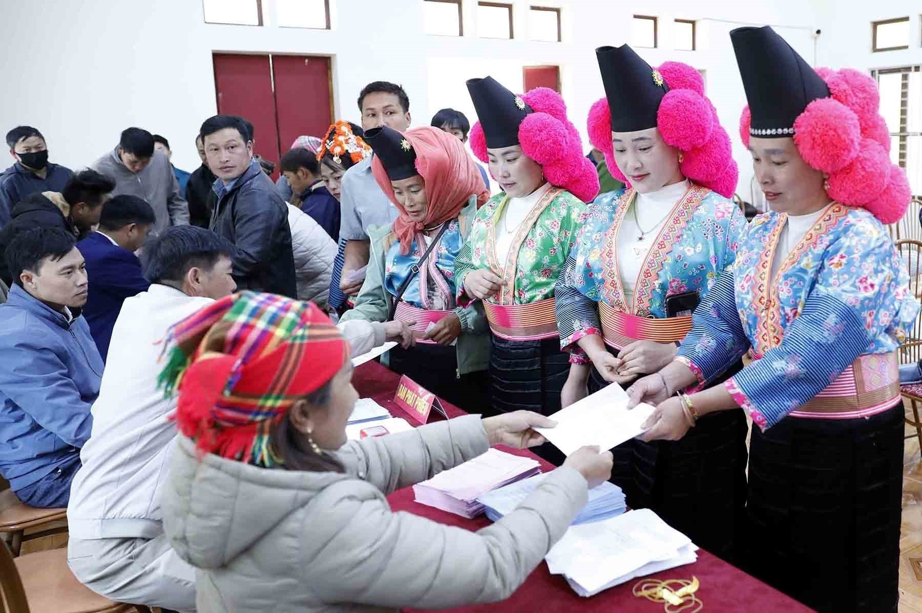 Cử tri Và Thị Dợ, dân tộc Mông, bản Pha Khuông bộc bạch: “Chúng tôi đi cùng nhau đến đây từ lúc 5 giờ sáng để bầu đại biểu Quốc hội khóa XVI và đại biểu HĐND các cấp nhiệm kỳ 2026-2031. Chúng tôi mong muốn, bầu ra những đại biểu ưu tú đại diện cho nhân dân để phát triển kinh tế, văn hóa, xã hội của địa phương và cho cuộc sống của người dân ấm no, hạnh phúc”.