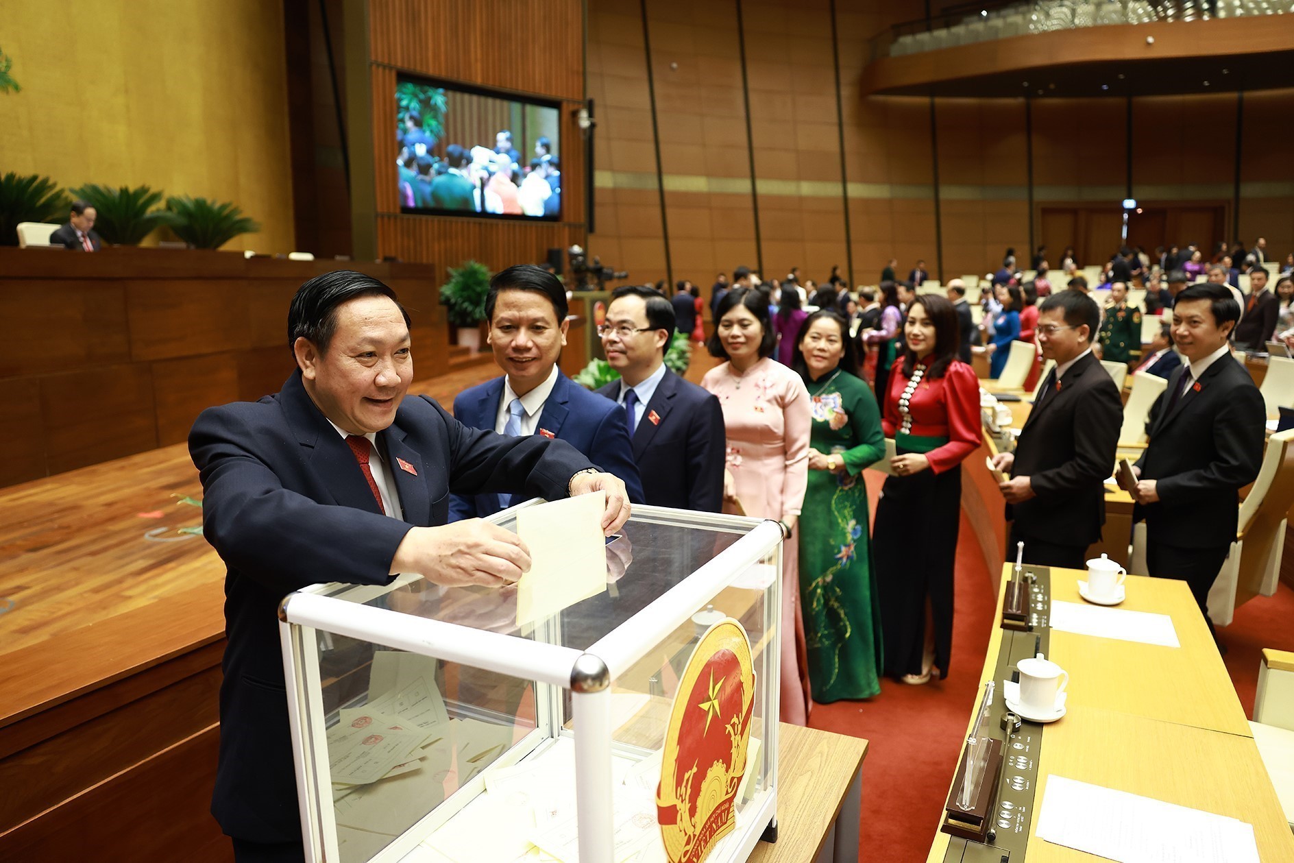 Đại biểu Quốc hội bỏ phiếu bầu Chủ tịch Quốc hội khoá XVI. Ảnh: Doãn Tấn - TTXVN