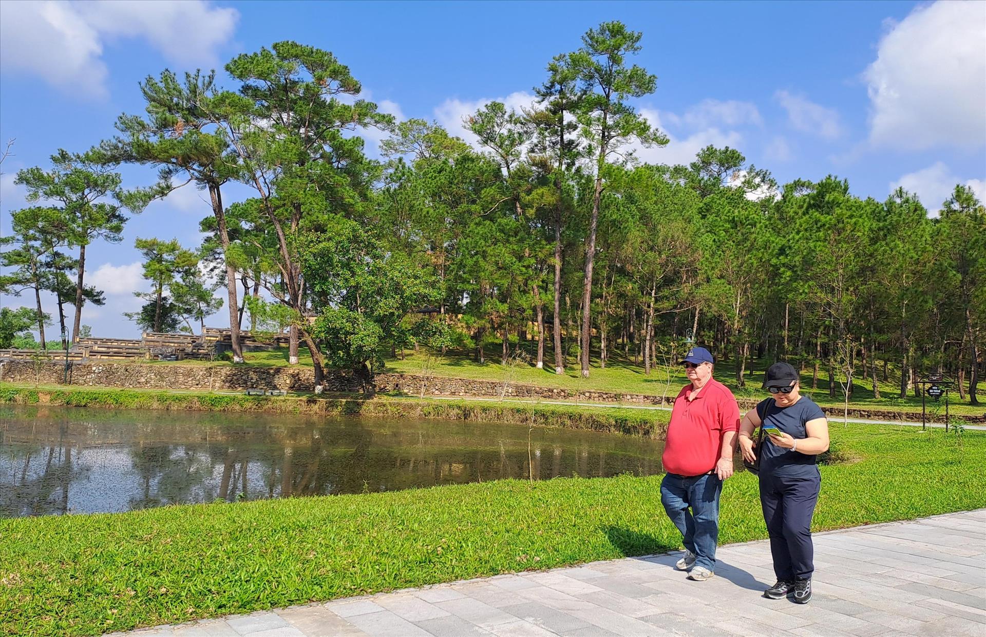 Du khách tham quan lăng vua Gia Long ở Huế. Ảnh: Nguyên Lý - TTXVN