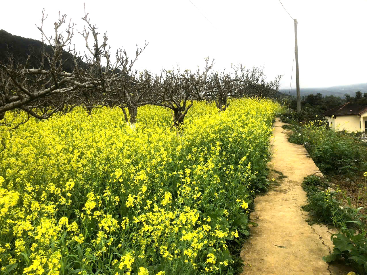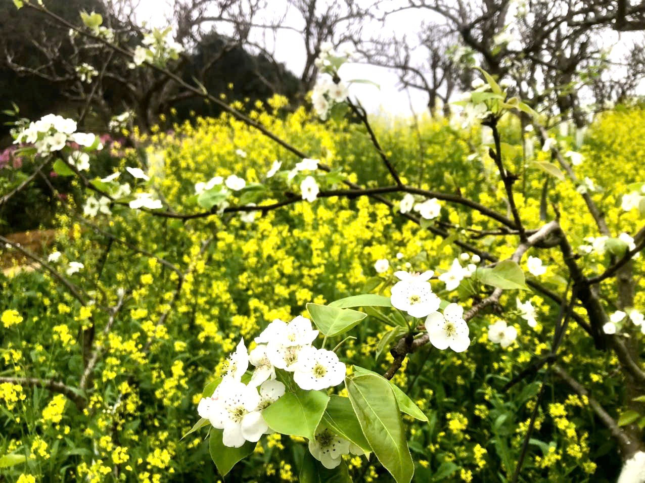 Sắc hoa lê trắng muốt xen lẫn trong những luống cải vàng rực.