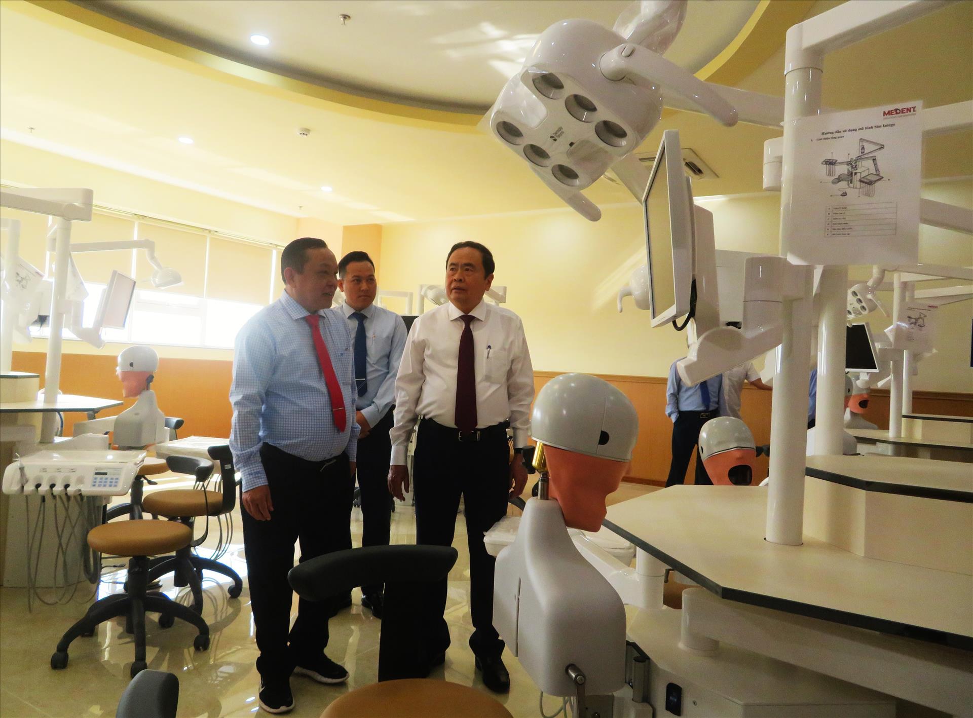 Để mô hình này đạt hiệu quả tối ưu, nhà trường thiết lập môi trường quốc tế bằng cách áp dụng mô hình đào tạo tiên tiến. Cụ thể như: Giáo trình chuẩn quốc tế, được cập nhật thường xuyên theo xu hướng phát triển của thế giới; giảng viên là chuyên gia trong nước và quốc tế, đến từ các quốc gia có nền giáo dục tiên tiến như Hoa Kỳ, Malaysia…; cơ sở vật chất hiện đại, bao gồm phòng học thông minh, các phòng thí nghiệm chuẩn quốc tế và đặc biệt là mô hình giải phẫu toàn thân SynDaver - công nghệ mô phỏng y học tiên tiến của Mỹ; chương trình giao lưu văn hóa, trao đổi sinh viên quốc tế, tạo điều kiện để sinh viên mở rộng mạng lưới kết nối và trải nghiệm môi trường học tập toàn cầu; cộng đồng sinh viên quốc tế đa dạng, giúp sinh viên rèn luyện khả năng giao tiếp liên văn hóa và thích nghi nhanh với môi trường đa ngôn ngữ, đa văn hóa. Quan trọng hơn, người học còn được thụ hưởng một môi trường học thuật thực chất, nơi tiếng Anh được sử dụng đa chiều từ lớp học, thư viện đến các hoạt động ngoại khóa, hội thảo và giao lưu quốc tế.