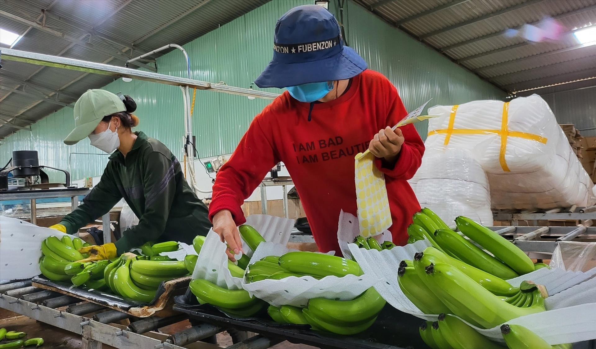 Sơ chế chuối xuất khẩu tại Công ty Cổ phần Nông nghiệp công nghệ cao Hưng Sơn, phường An Phú, tỉnh Gia Lai. Ảnh: Hoài Nam – TTXVN