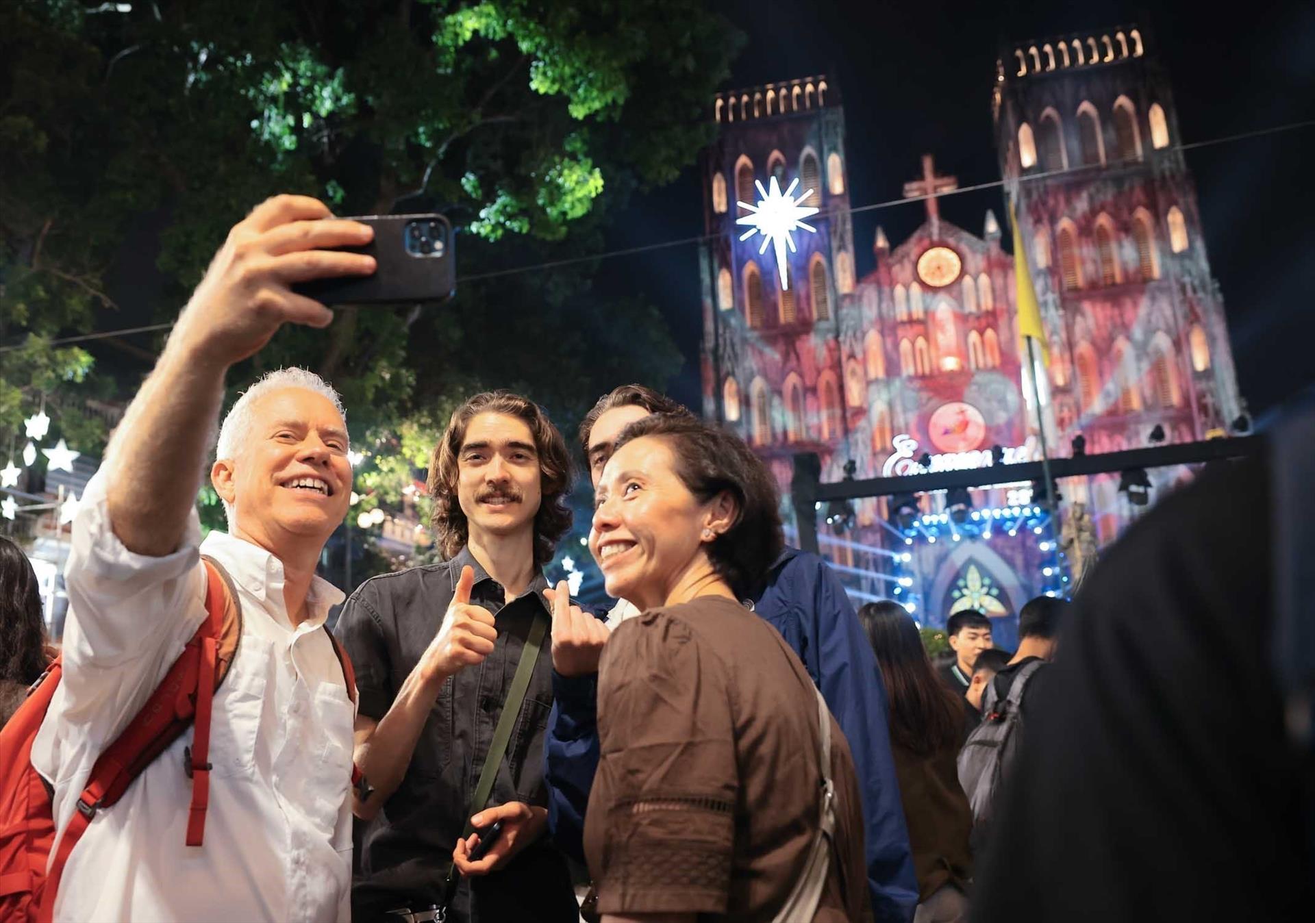 Không ít du khách nước ngoài tỏ ra thích thú khi chứng kiến một Hà Nội sôi động, cởi mở và giàu màu sắc lễ hội trong dịp Noel.
