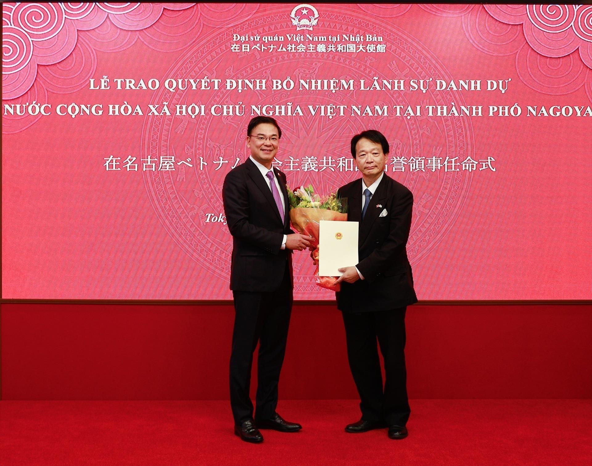 Phát biểu tại buổi lễ, Đại sứ Phạm Quang Hiệu nhấn mạnh: “Với việc bổ nhiệm thêm một nhiệm kỳ mới, chúng tôi kỳ vọng với tình yêu Việt Nam vô bờ bến, ngài sẽ tiếp tục thực hiện tốt chức năng của một Lãnh sự danh dự. Theo đó, thúc đẩy quan hệ nhiều mặt giữa Aichi và Việt Nam, hỗ trợ công tác bảo hộ công dân, kết nối cộng đồng”.
