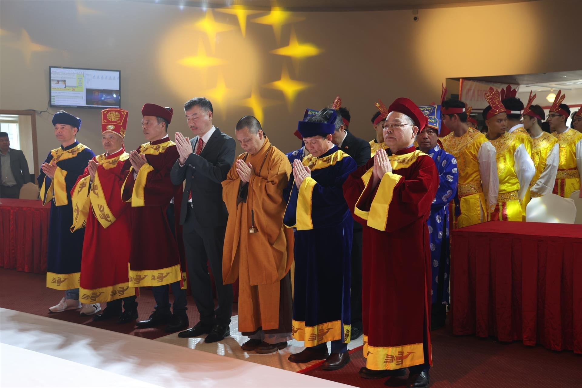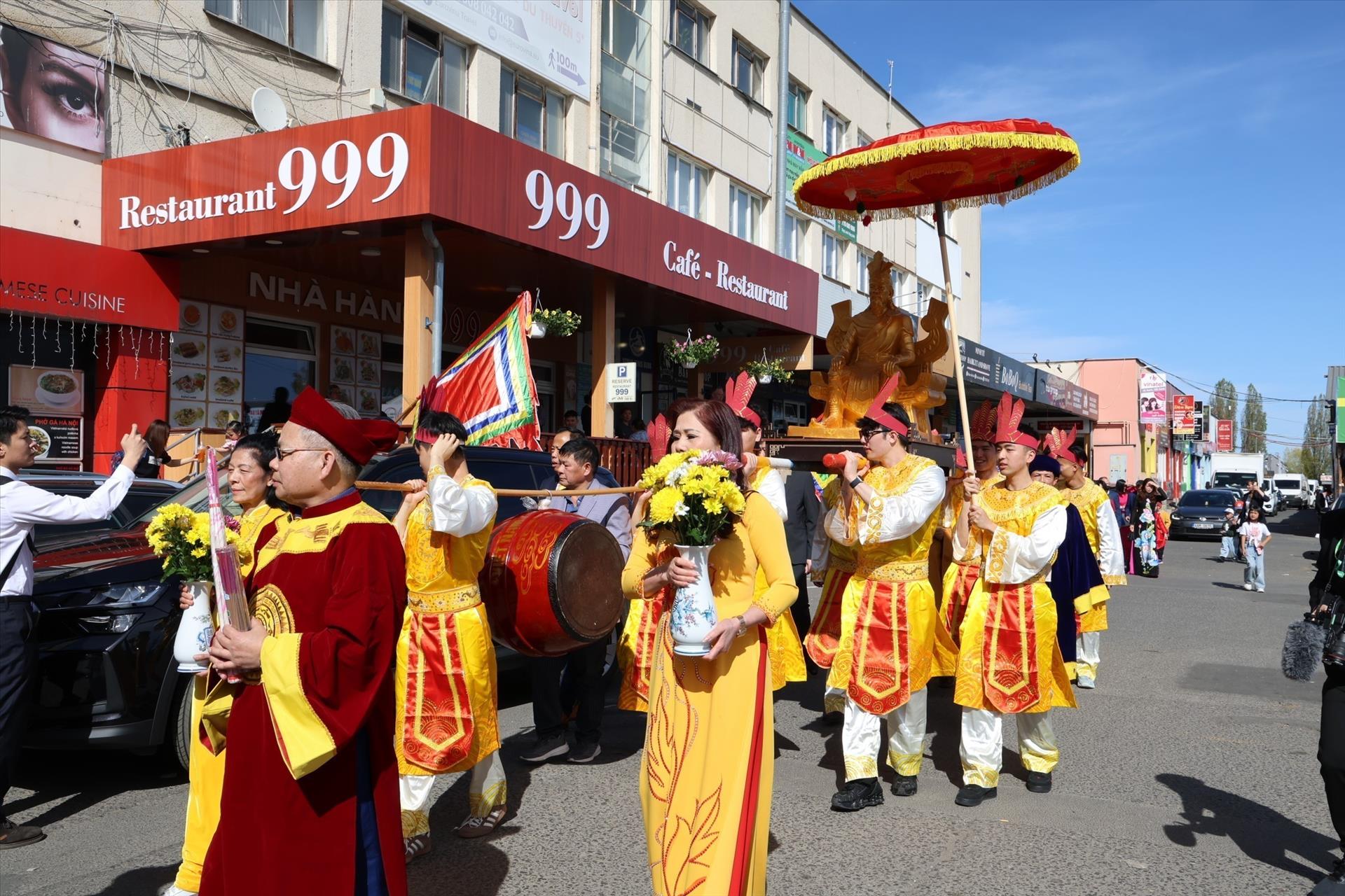 Mở đầu buổi lễ là nghi thức rước tượng Đức Quốc Tổ Hùng Vương. Đoàn rước uy nghi với cờ hội, kiệu rước và tiếng trống chiêng vang vọng đã diễu hành từ Văn phòng Hội người Việt Nam trong khuôn viên Trung tâm Thương mại Sapa tới khu vực hành lễ. Hình ảnh thế hệ trẻ người Việt trong trang phục truyền thống, tay nâng cờ, vai khiêng kiệu, bước đi nhịp nhàng đã tạo nên không gian vừa trang nghiêm, vừa xúc động, thể hiện sự tiếp nối văn hóa giữa các thế hệ nơi đất khách.