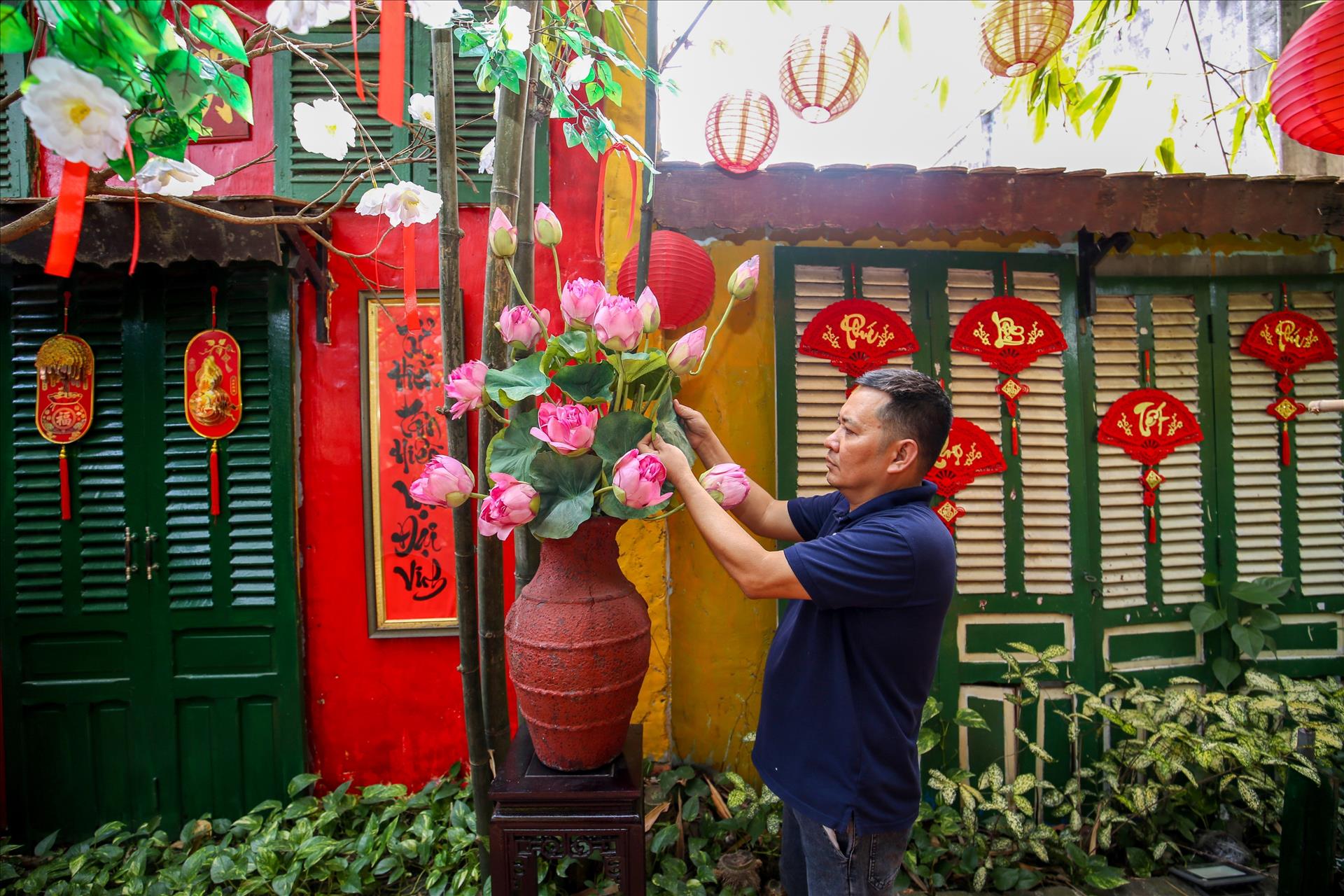 Đằng sau những không gian Tết ấy là sự miệt mài của những người làm nghề sáng tạo. Những ngày này, những chủ quán cà phê như anh Trương Ái Quốc đều tất bật sáng tạo, “kể chuyện Tết” bằng sắc màu. Trong số đó, họa sĩ trẻ Lâm Trường Sơn (35 tuổi) gần như không có thời gian nghỉ khi tất bật “chạy show” trang trí Tết tại nhiều không gian công cộng, quán cà phê, điểm sinh hoạt văn hóa.