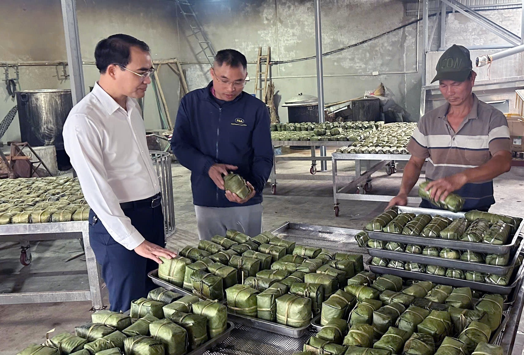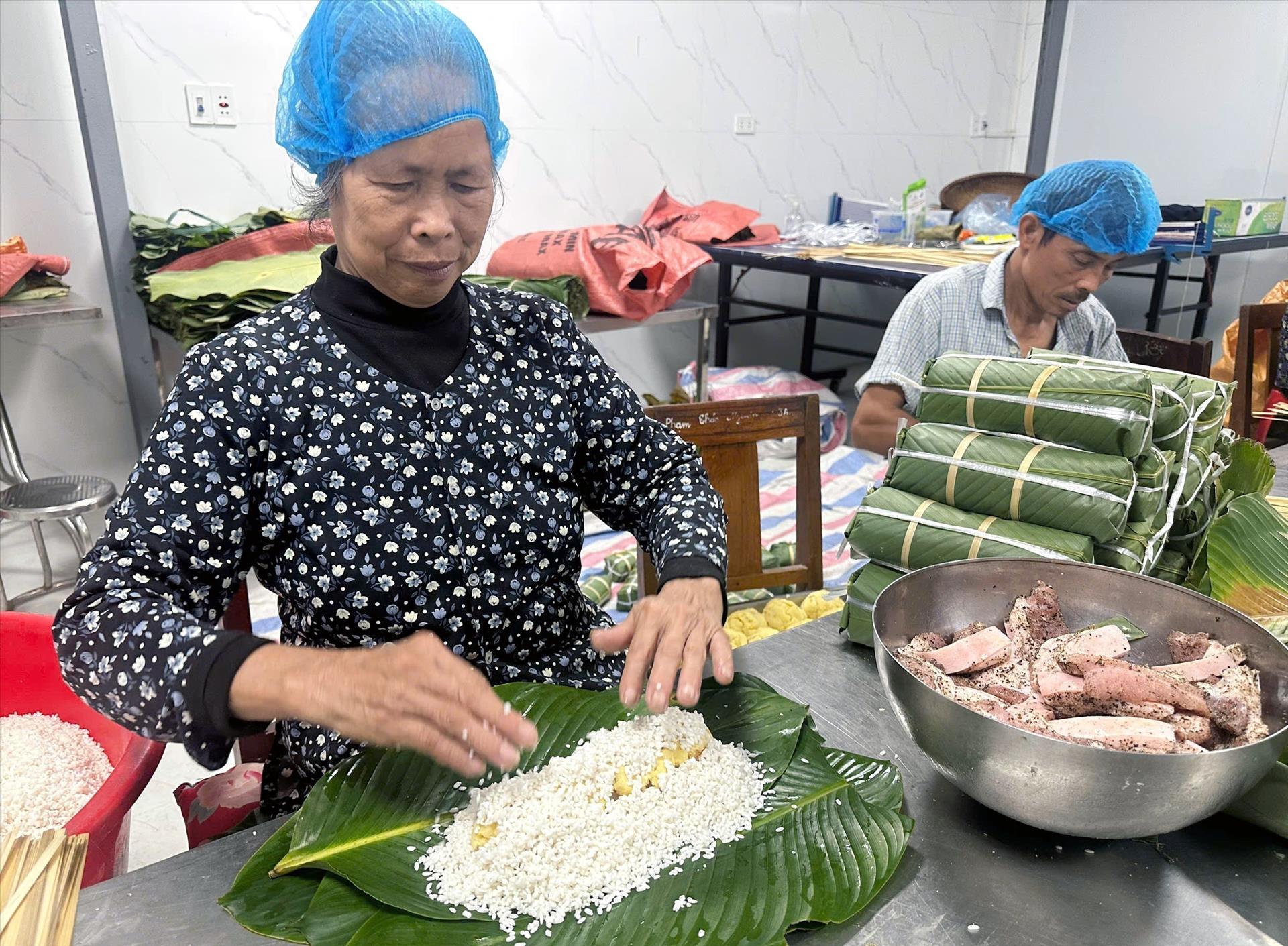 Tết cận kề, nhịp sống làng nghề chuyển sang sôi động hẳn. Ngoài ngõ, từng chuyến xe chở lá dong xanh mướt nối nhau cập bến; trong sân, gạo nếp trắng tinh, đỗ xanh vàng ươm được chuẩn bị sẵn sàng. Trong mỗi nhà, người già, trẻ nhỏ, thanh niên cùng tất bật, mỗi người một việc.