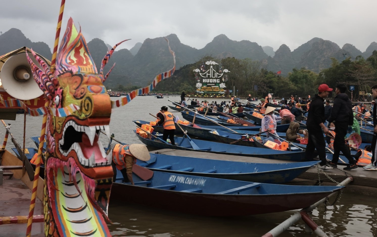 Bến đò đưa du khách đi khai hội chùa Hương. Ảnh: Trần Việt - TTXVN