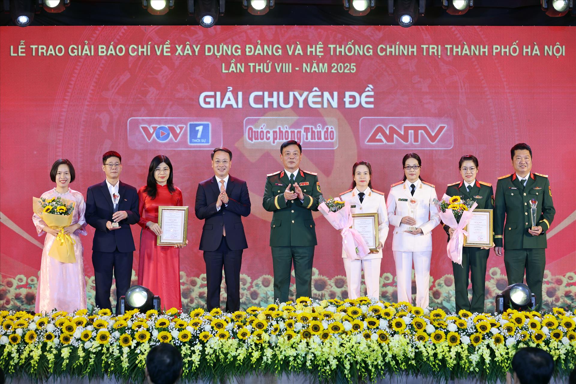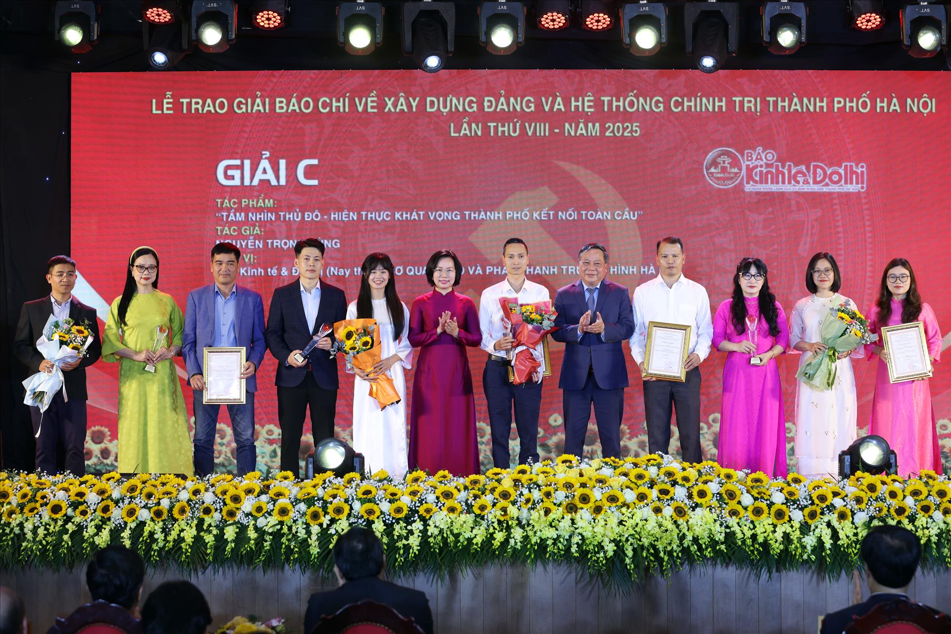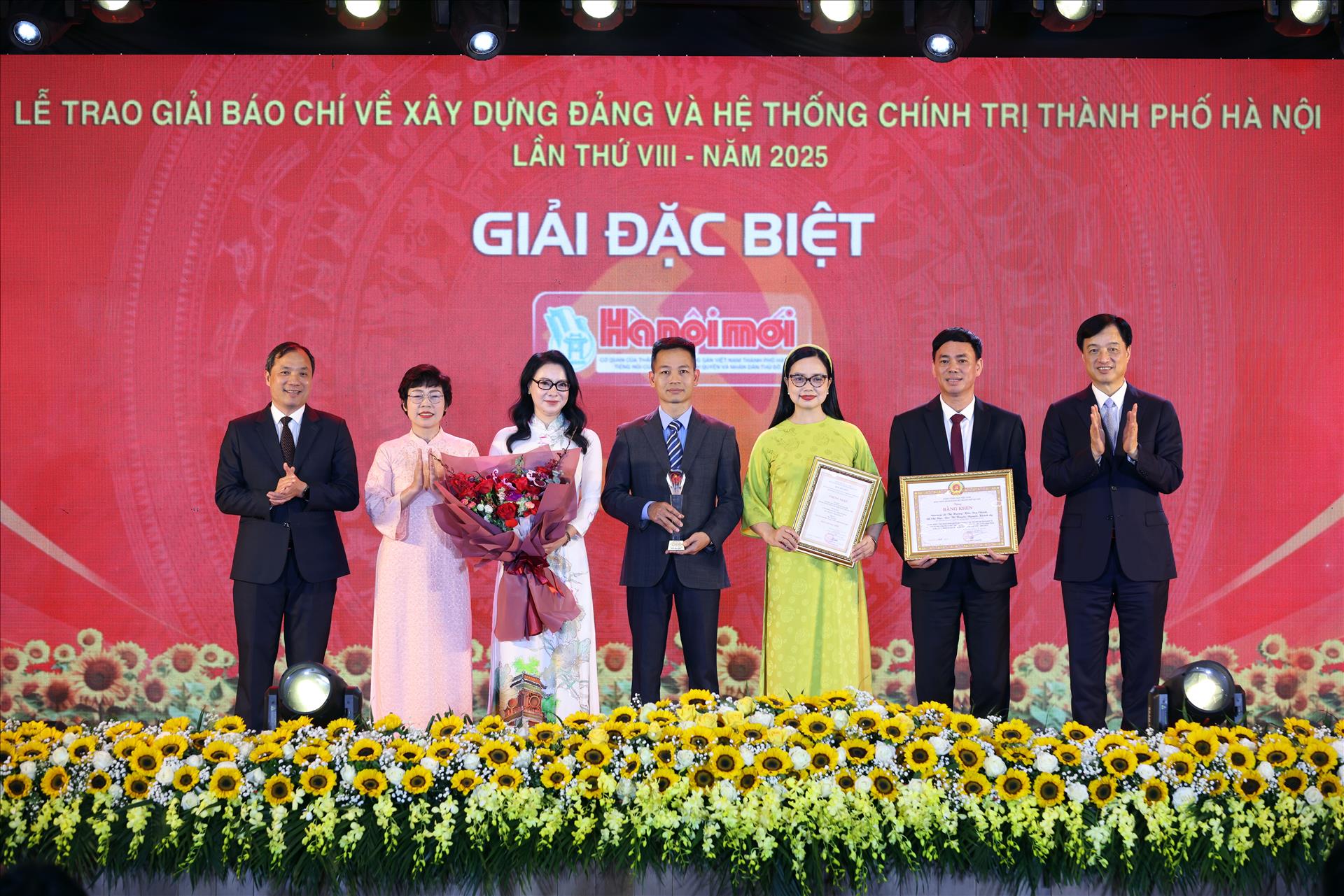 Nhóm tác giả Báo Hà Nội Mới vinh dự nhận Giải Đặc biệt từ lãnh đạo Thành ủy Hà Nội, ghi nhận tác phẩm có giá trị nổi bật và sức lan tỏa sâu rộng. Ảnh: Công Đạt/Báo ảnh Việt Nam