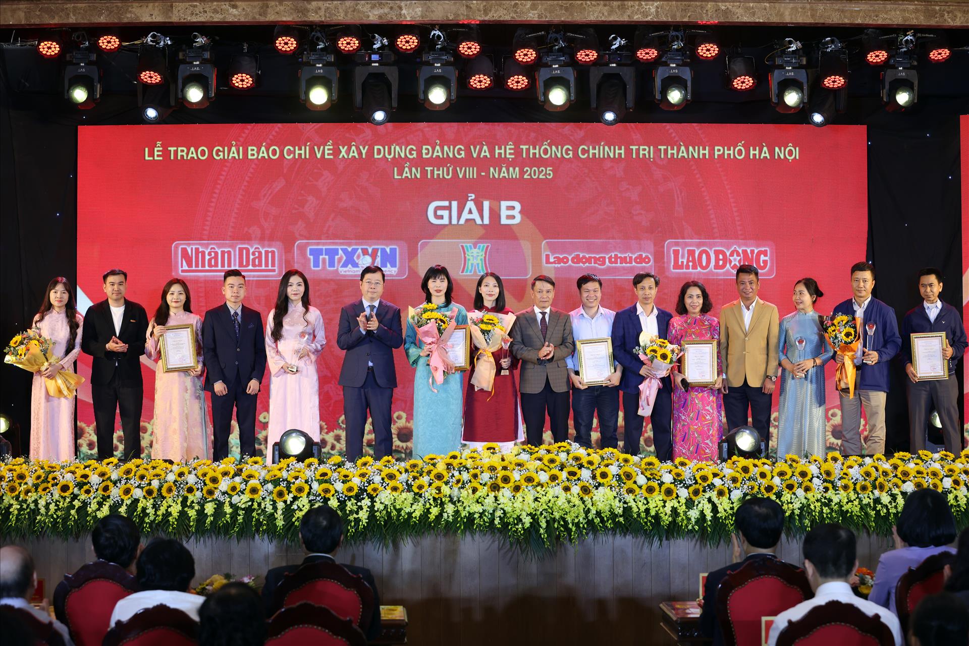 Ban Tổ chức trao giải B cho các tác giả, nhóm tác giả đến từ Báo Nhân Dân, Thông tấn xã Việt Nam, Cơ quan Báo và phát thanh, truyền hình Hà Nội, Báo Lao động Thủ đô, Báo Lao động. Ảnh: Công Đạt/Báo ảnh Việt Nam