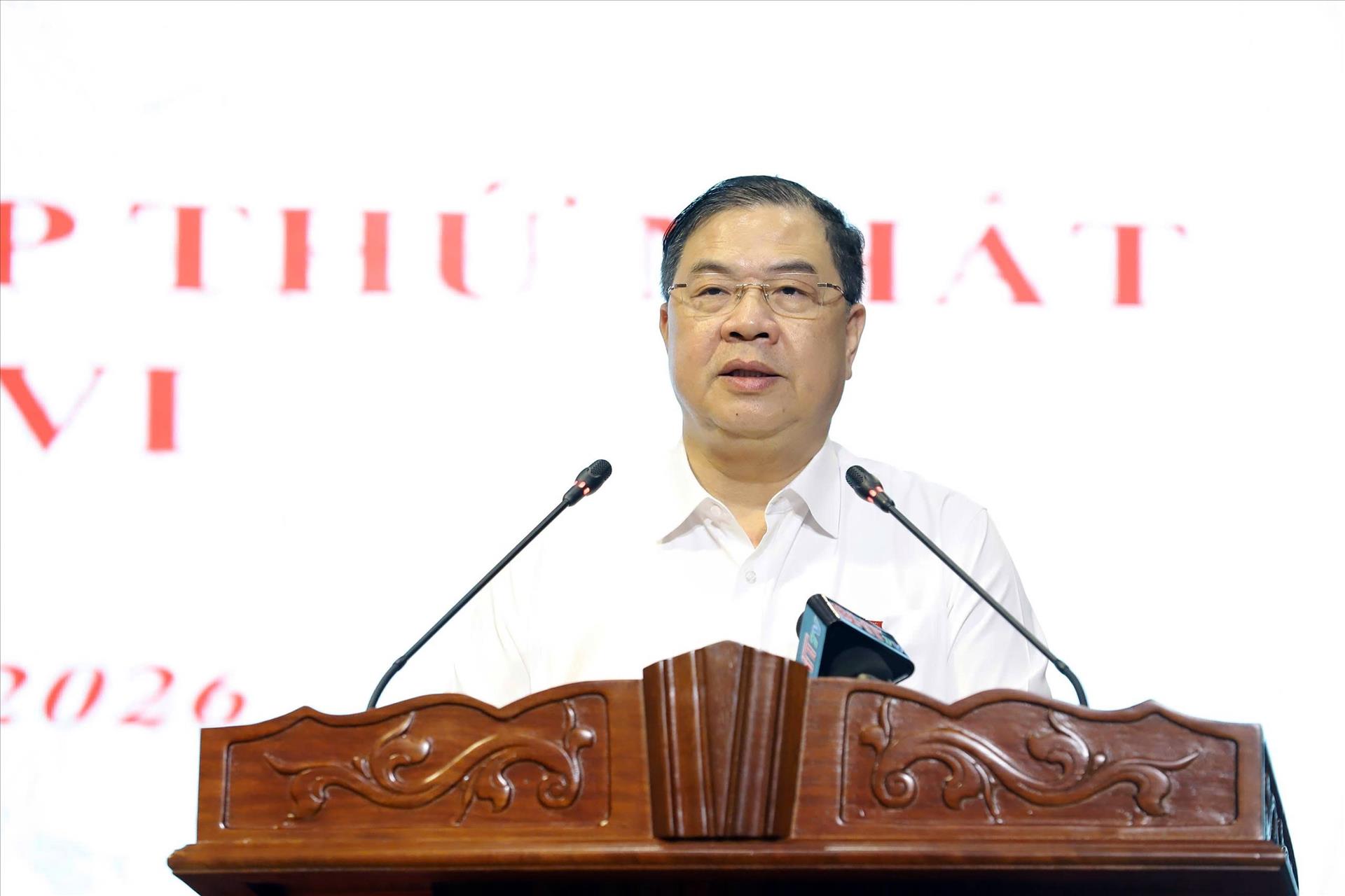 Phó Thủ tướng Thường trực Chính phủ Phạm Gia Túc phát biểu tại cuộc tiếp xúc cử tri. Ảnh: Hữu Quyết - TTXVN