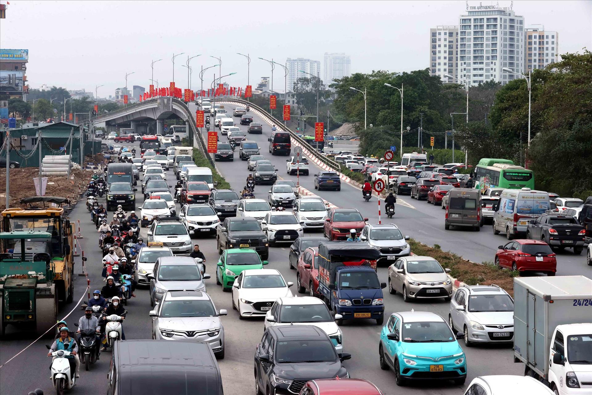 Các tuyến đường từ cầu Thăng Long, cầu Nhật Tân hướng đi sân bay Quốc tế Nội Bài (xã Nội Bài, Hà Nội) xảy ra ùn ứ cục bộ ở một số thời điểm.