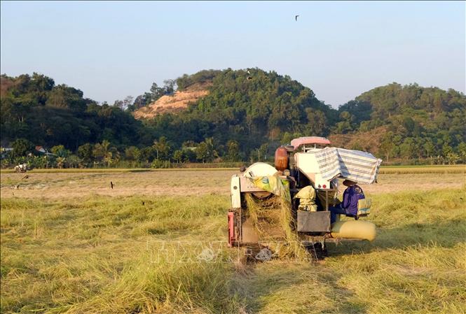 Cánh đồng Nếp Quýt đặc sản Đạ Tẻh áp dụng cơ giới hóa hầu hết các khâu sản xuất. Ảnh: TTXVN phát