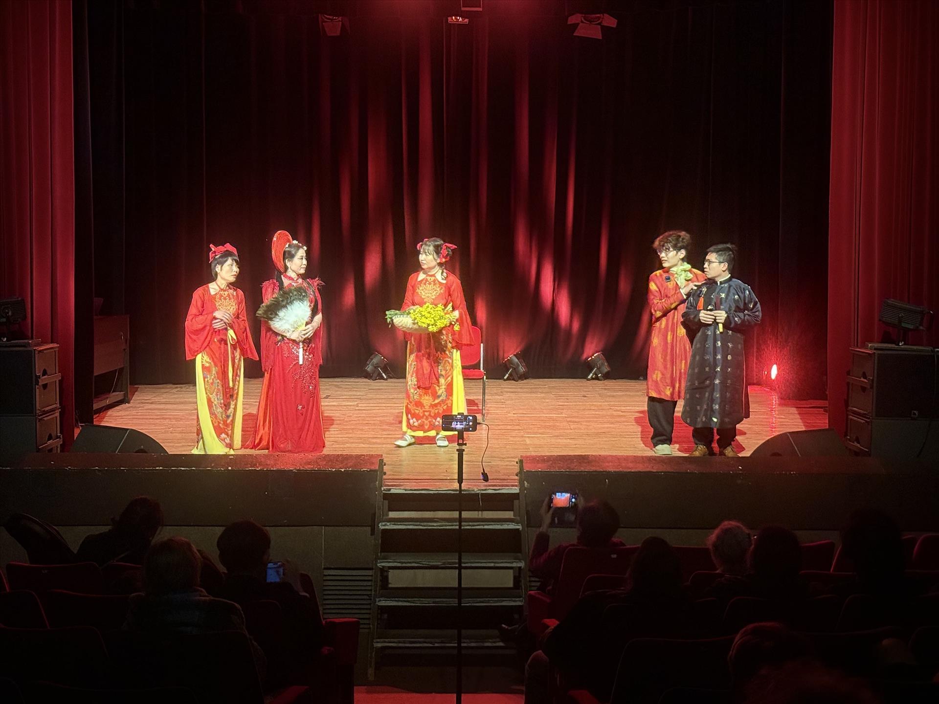 Hợp ca quê hương – nhóm hợp xướng của cộng đồng người Việt tại Pháp đặc biệt thu hút khán giả với vở kịch “Gặp nhau giữa nhân gian”. Ảnh: Hữu Chiến - P/v TTXVN tại Pháp