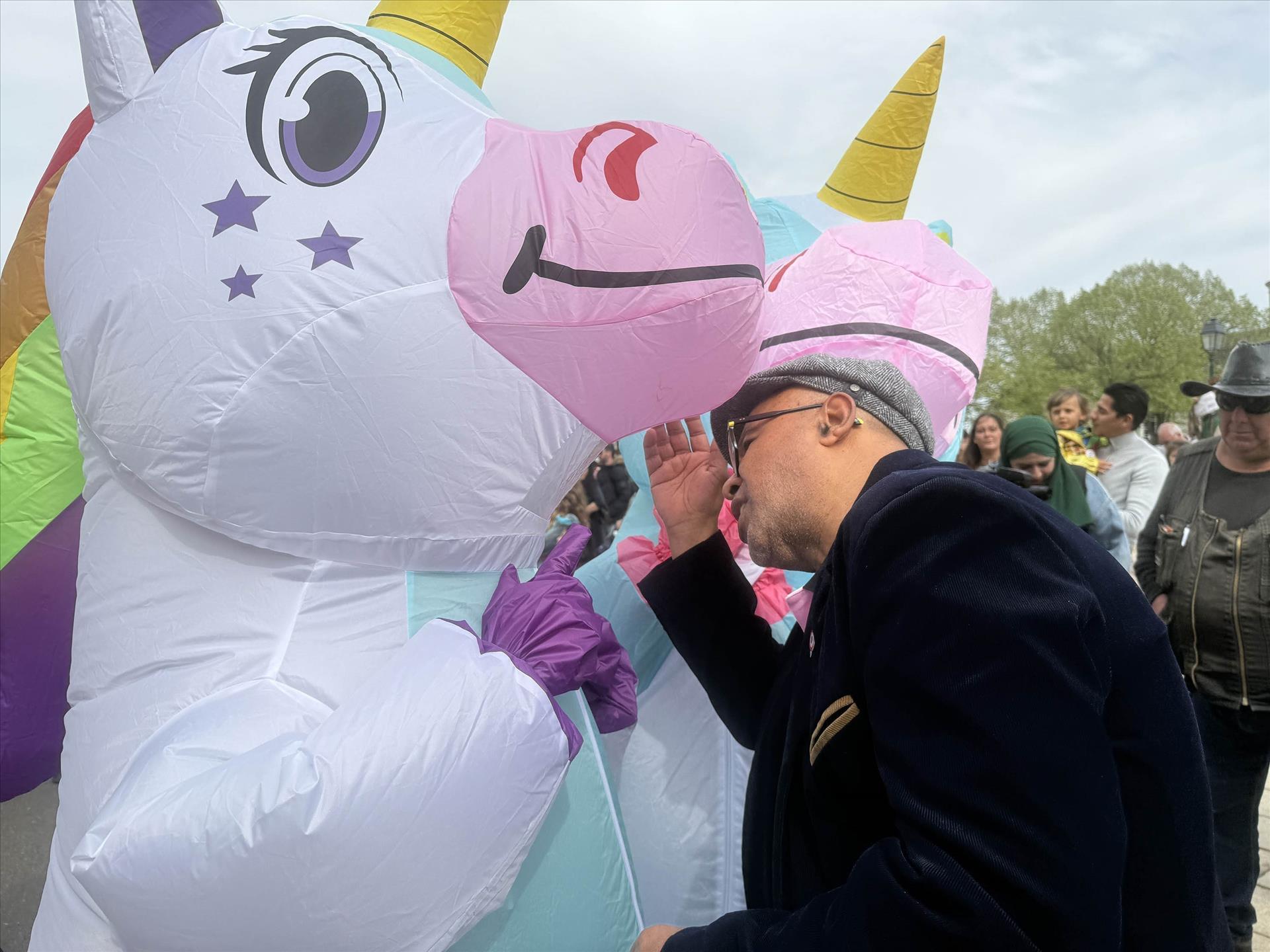 Màn giao lưu giữa nghệ sĩ hóa trang và khán giả tại lễ hội carnaval thành phố Chateaudun. Ảnh: Hữu Chiến - P/v TTXVN tại Pháp
